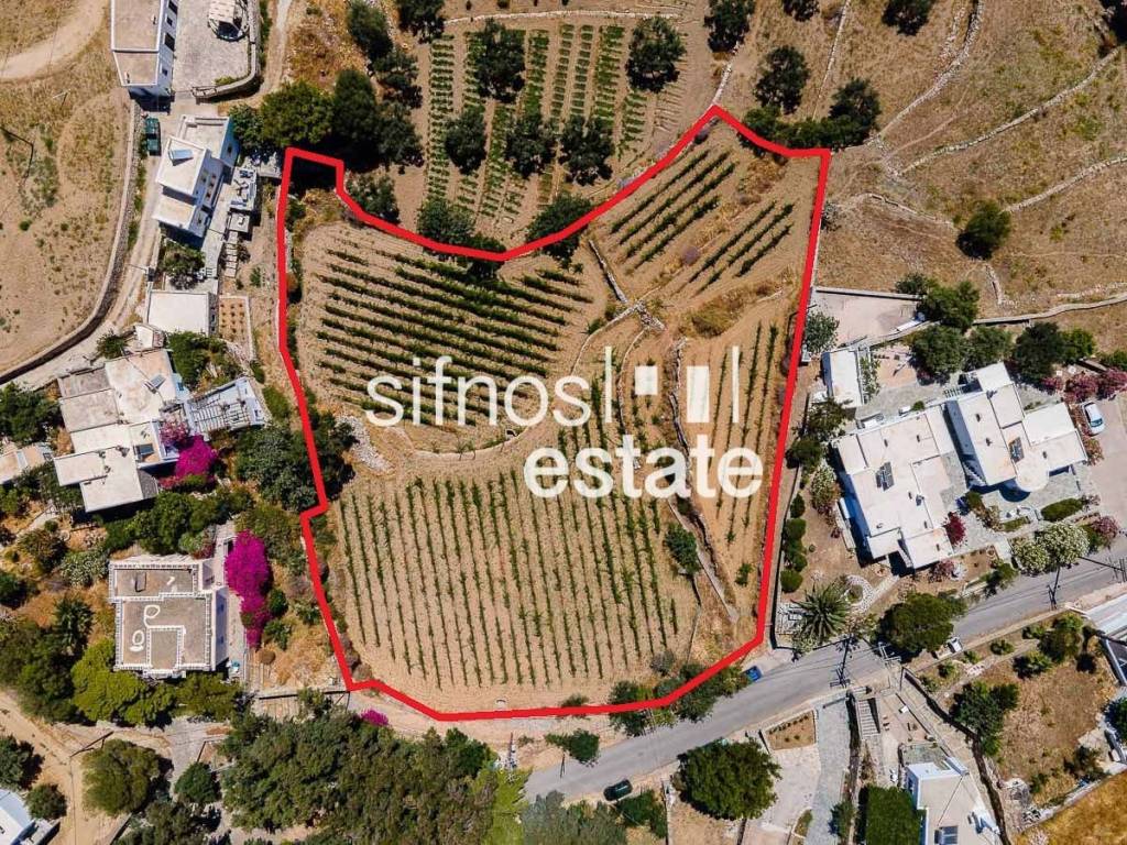 Προς πώληση οικόπεδο 4.180τμ στο Κάτω Πετάλι Σίφνου Κυκλάδων, εκτός οικισμού, με δικαίωμα δόμησης έως 203τμ για κατοικία. Το ακίνητο είναι αμφιθεατρικό και ελαφρώς επικλινές, με ανατολικό προσανατολισμό, και απολαμβάνει θέα στα γύρω νησιά, λόφους και οικισμούς αλλά και τη θάλασσα. Διαθέτει πρόσοψη στον κεντρικό ασφάλτινο αυτοκινητόδρομο και προσφέρει άμεση πρόσβαση με αυτοκίνητο, αλλά και με μεγάλα φορτηγά και μηχανήματα, χαρακτηριστικό που ελαχιστοποιεί το κόστος κατασκευής. Το ηλεκτρικό δίκτυο, το δίκτυο ύδρευσης και το δίκτυο αποχέτευσης περνούν έξω από το οικόπεδο, προσφέροντας άμεση σύνδεση χωρίς επιπλέον κόστος. Ολόκληρο το ακίνητο είναι φυτεμένο αμπέλι, το οποίο χρησιμοποιείται για παραγωγή κρασιού σε επαγγελματική κλίμακα, προσδίδοντας ξεχωριστό χαρακτήρα και δυνατότητα αξιοποίησης. Βρίσκεται μόλις 150μ από στάση λεωφορείου, ενώ σε πολύ κοντινή απόσταση υπάρχουν εστιατόριο (50μ) και σούπερ μάρκετ (200μ). Το κέντρο του νησιού και η Απολλωνία απέχουν 2 λεπτά με το αυτοκίνητο, ή περίπου 7 λεπτά με τα πόδια μέσω παραδοσιακού μονοπατιού. Το οικόπεδο αποτελεί εξαιρετική επιλογή για ανέγερση κατοικίας και για τουριστική αξιοποίηση, συνδυάζοντας μεγάλη έκταση, άμεση πρόσβαση και πολύ μικρή απόσταση από την πρωτεύουσα και τις υποδομές του νησιού.