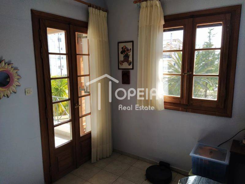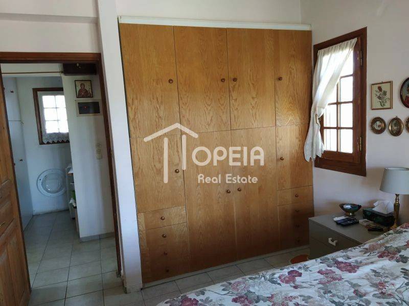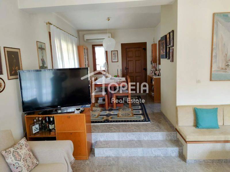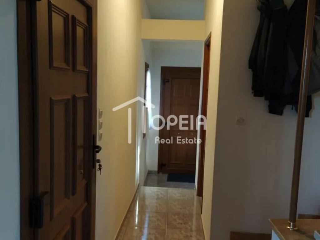 Η μεζονέτα των 135,55 τ.μ., αποτελείται από α) ισόγειο 75,50τμ που έχει ευρύχωρο σαλόνι με τζάκι, τραπεζαρία, μεγάλη κουζίνα και WC, και β) 1ο όροφο 59,95τμ. 3 υπνοδωμάτια, 1 μπάνιο, 1 ιματιοθήκη, 1 κουζινάκι/πλυσταριό. Έχει ενδοδαπέδια θέρμανση με λέβητα πετρελαίου, καθώς και κλιματιστικά. Διαθέτει παραδοσιακά ξύλινα κουφώματα, εκτός από τις εξώπορτες που είναι πόρτες ασφαλείας.