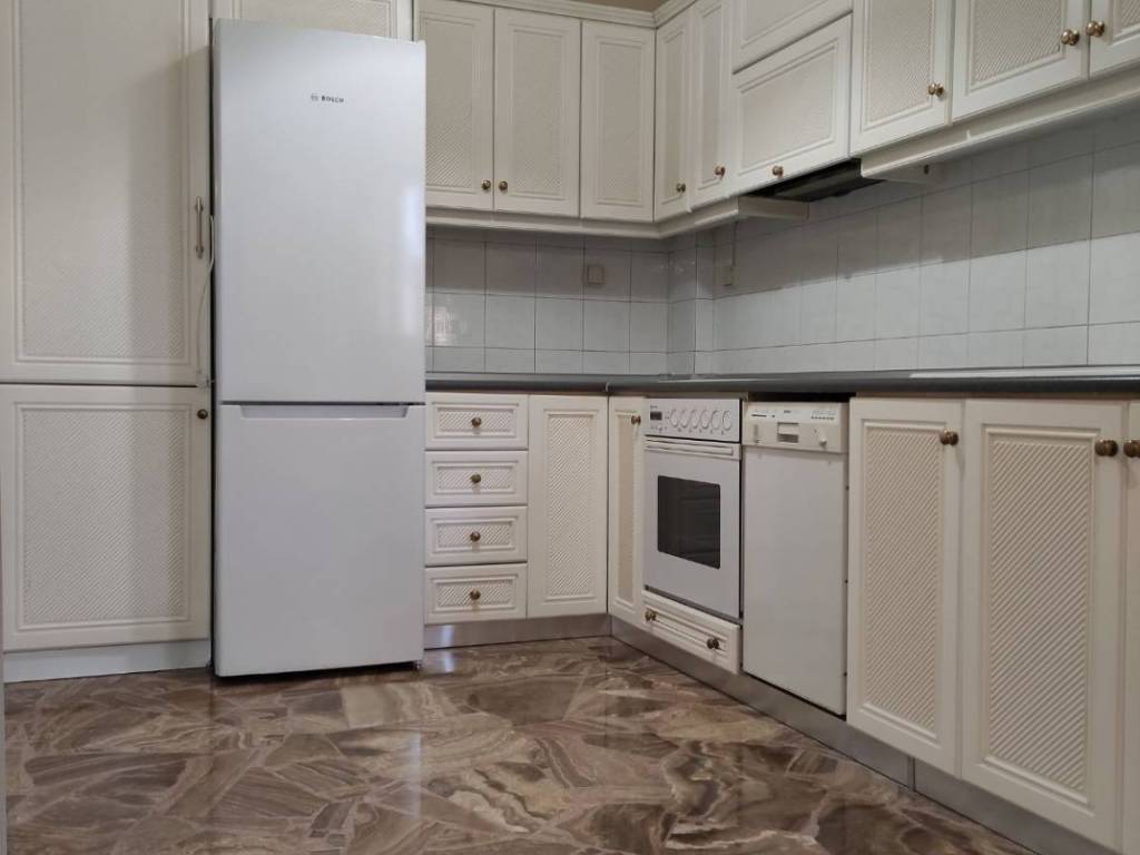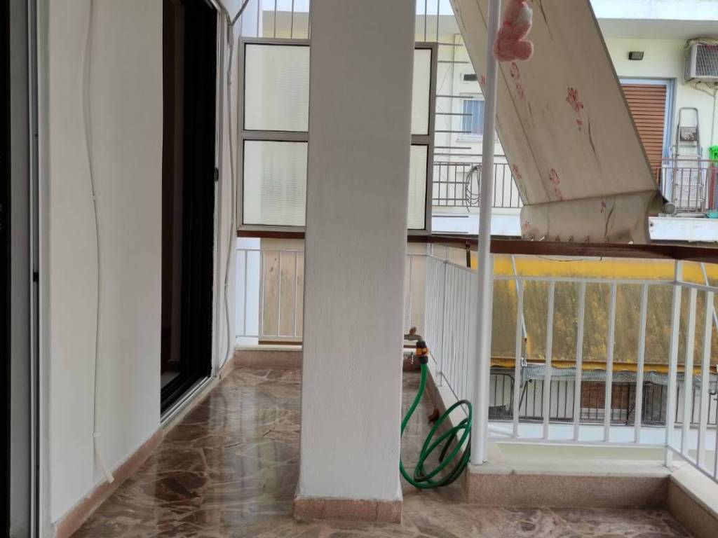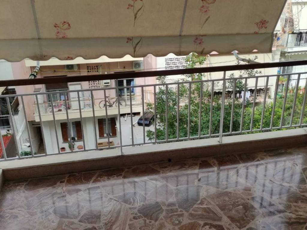 Διαμέρισμα διαμπερές 2ου ορόφου 110τμ., ανακαινισμένο, 2 μπάνια, μεγάλο πατάρι, 2 κρεβατοκάμαρες με ξύλινο πάτωμα και μεγάλες εντοιχισμένες ντουλάπες.Χωλ, κουζίνα με διαθέσιμες εντοιχισμένες όλες τις ηλεκτρικές συσκευές και μεγάλο σαλόνι με πάτωμα από Κρητικό όνυχα.Μπαλκόνι προσόψεως με σύστημα αυτόματου ποτίσματος. Πίσω μπαλκόνι βλέπει σε εσωτερική αυλή με δένδρα. Κουφώματα αλουμινίου Europa με σίτες. Τρία A/C, στις κρεβατοκάμαρες και το σαλόνι. Κεντρική θέρμανση, κοινόχρηστα μόνο για καθαριότητα. Καινούργιος ηλιακός 160 λίτρων. Αποκλείονται μεσίτες.