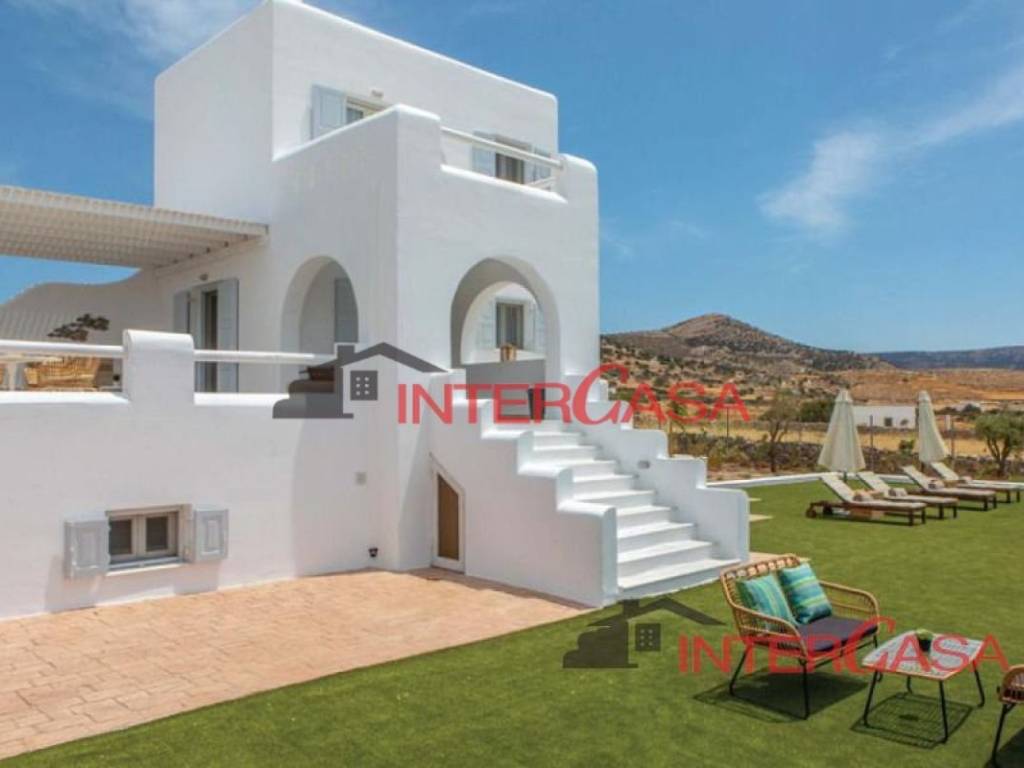 Naxos Island. A Magnificent Cycladic Holiday Villa Only 100m From The Sea. Built On 3 Levels, Inside A Secured Land With A Guardhouse At The Front Gate Entrance, Offering A Private Landscaped Garden With Bbq. Size: 146 Sq.m., 3 Levels Plot Size: 1323 Sq.m. 4 Bedrooms, 4 Bathrooms 2 Living Rooms, Pool, Bbq Sea View Balcony & Patio Wifi - A/c In All Rooms 2 Fully Equipped Kitchens Private Parking Area