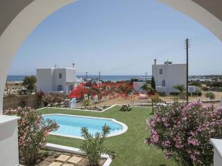 Naxos Island. A Magnificent Cycladic Holiday Villa Only 150m From The Sea. Built On 3 Levels, Inside A Secured Land With A Guardhouse At The Front Gate Entrance, Offering A Private Landscaped Garden With Bbq. Size: 162 Sq.m., 3 Levels Plot Size: 1556 Sq.m. 4 Bedrooms, 4 Bathrooms 2 Living Rooms, Pool, Bbq Sea View Balcony & Patio Wifi - A/c In All Rooms 2 Fully Equipped Kitchens Private Parking Area