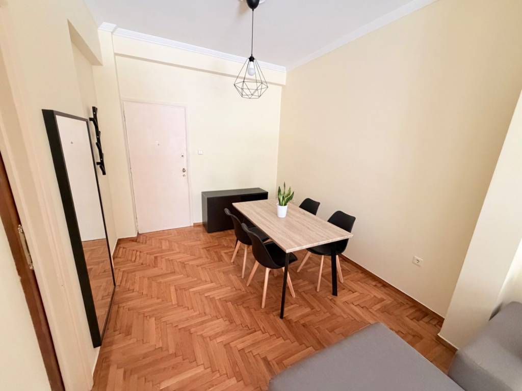 Επιπλωμένο Διαμέρισμα 58 τ.μ. – 3ος Όροφος – Πλατεία Αμερικής – 650€ Στην καρδιά της Πλατεία Αμερικής, στην οδό Κύπρου 7 (Τ.Κ. 11253), διατίθεται προς ενοικίαση πλήρως επιπλωμένο και εξοπλισμένο διαμέρισμα 58 τ.μ., 3ου ορόφου. Πρόκειται για προσεγμένο δυάρι, φωτεινό και λειτουργικό, ιδανικό για ζευγάρι, εργαζόμενο ή φοιτητή που επιθυμεί άμεση εγκατάσταση χωρίς επιπλέον κόστος επίπλωσης. Διαρρύθμιση & Παροχές ✔ Πλήρως εξοπλισμένη κουζίνα (ηλεκτρική κουζίνα & ψυγείο) ✔ Σαλόνι με γωνιακό καναπέ, πουφ, έπιπλο σαλονιού & τραπεζαρία 4 ατόμων ✔ Υπνοδωμάτιο με διπλό κρεβάτι, 2 κομοδίνα & συρταριέρα ✔ Μπαλκόνι με ξύλινο τραπέζι εξωτερικού χώρου, 4 καρέκλες με μαξιλάρια & αποθηκευτική ντουλάπα ✔Air condition στο σαλόνι και στην κρεβατοκάμαρα Το διαμέρισμα είναι έτοιμο για άμεση κατοίκηση. Τοποθεσία – Σημείο Υπεροχής Σε εξαιρετικά προνομιακό σημείο: • 5 λεπτά από Σταθμό Άγιο Νικόλαο • 7–10 λεπτά από Σταθμό Βικτώρια • Κοντά στον Σταθμό Αττική • Άμεση πρόσβαση σε λεωφορεία & τρόλεϊ • Σε κοντινή απόσταση από το Οικονομικό Πανεπιστήμιο Αθηνών • Εύκολη συγκοινωνιακή σύνδεση με το Εθνικό Μετσόβιο Πολυτεχνείο Η περιοχή διαθέτει super market, σχολεία, καφετέριες, εστιατόρια και πλήρη εμπορική αγορά σε απόσταση λίγων λεπτών με τα πόδια. Τιμή: 650€ / μήνα Ιδανική επιλογή για όσους αναζητούν άνεση, άμεση εγκατάσταση και κεντρική τοποθεσία.