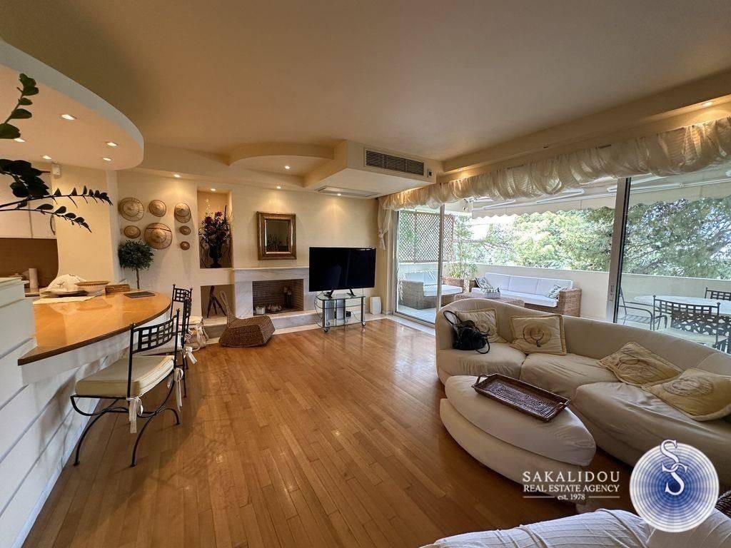 Βουλιαγμένη, πλήρως επιπλωμένο διαμέρισμα 2ου ορόφου 135 τ.μ, έτος κατασκευής: 2000. Αποτελείται από living room με τζάκι και ξύλινα πατώματα, κουζίνα ανοιχτή πλήρως εξοπλισμένη, 2 υπνοδωμάτια, 2 μπάνια, μεγάλη βεράντα με θέα στο πράσινο. Διαθέτει αυτόνομη θέρμανση με πετρέλαιο, boiler, τέντες και μια θέση στάθμευσης στο υπόγειο. Κοντά στο κέντρο της Βουλιαγμένης, τα μέσα μαζικής μεταφοράς και την θάλασσα. Διατίθεται και για βραχυχρόνια μίσθωση σε άλλη τιμή.