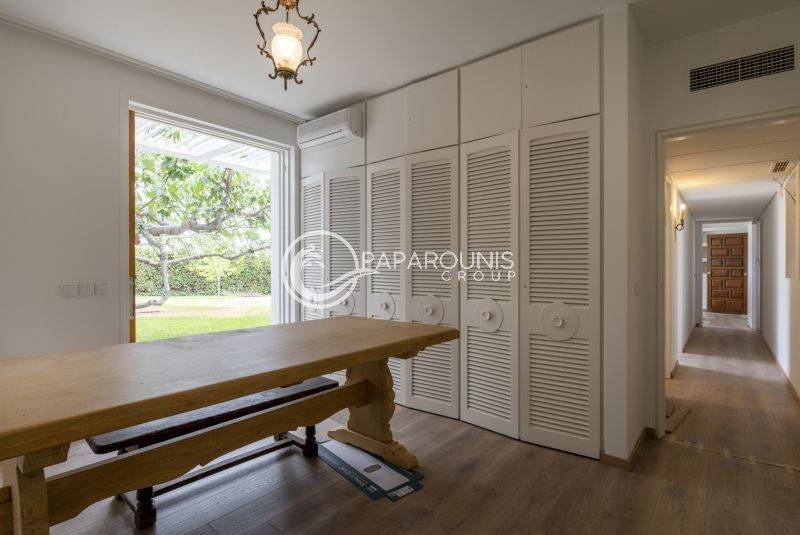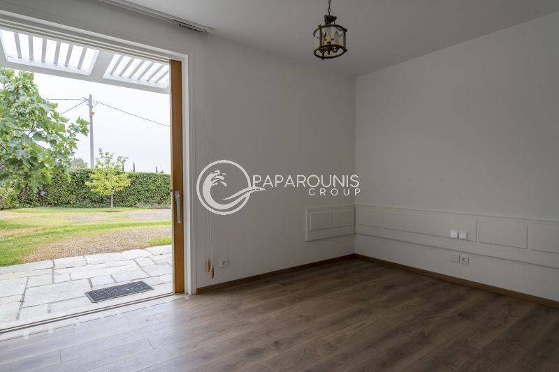 Η βίλα αυτή αποπνέει μία αύρα της παλαιάς εποχής σε συνδυασμό με την ποιοτική ανακαίνιση , δίνει μία αίσθηση υπεροχής και χλιδής στον ενοικιαστή . Η φωτεινότητα που περιβάλλεται το σπίτι αυτό, όπως δεσπόζει μέσα από έναν μεγάλο περιμετρικό κήπο, με αποκλειστική χρήση 800τ.μ., ιδανικό για χαλάρωση και ψυχαγωγία με φίλους και συγγενείς .