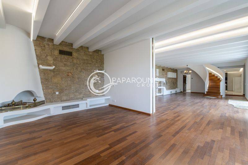 Σε κάθε περίπτωση το σπίτι είναι ένα ποίημα και έχει άνετους χώρους υποδοχής, τραπεζαρίας και στο σαλόνι 2 τζάκια. Όλα αυτά φυσικά δημιουργούν μια ζεστή και φιλόξενη ατμόσφαιρα.