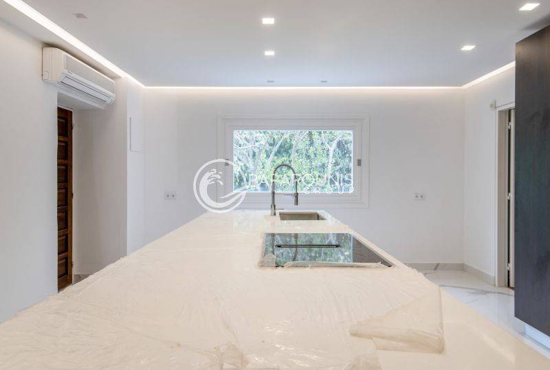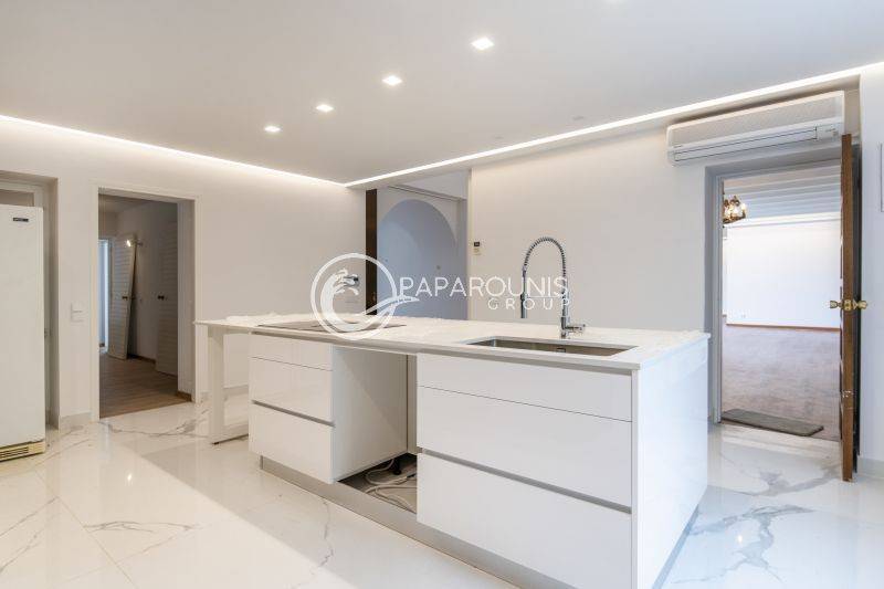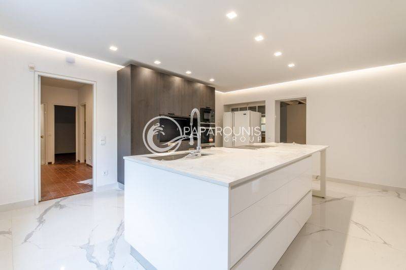 Περνώντας στην κουζίνα βρίσκουμε την απλότητα σε συνδυασμό με την τεχνολογία και το υπέροχο design . Διαθέτει όλες τις ηλεκτρικές συσκευές εντοιχισμένες , πάγκο στη μέση για άνεση την μαγειρική και στην καθημερινή χρήση , με πολλούς χώρους αποθηκευτικούς !