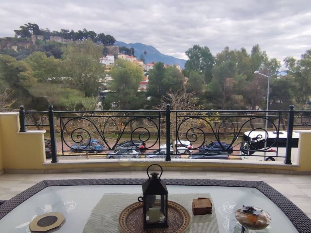Το μεγάλο και ευρύχωρο μπαλκόνι προσφέρει απεριόριστη και ανεμπόδιστη θέα προς το Κάστρο της Καλαμάτας, χαρίζοντας μοναδική αίσθηση ελευθερίας και φωτεινότητας σε όλους τους εσωτερικούς χώρους. Η θέα αυτή αποτελεί ένα από τα πιο εντυπωσιακά χαρακτηριστικά του ακινήτου, καθώς συνδυάζει το ιστορικό στοιχείο με τη φυσική ομορφιά της πόλης.