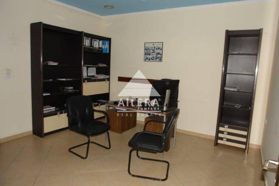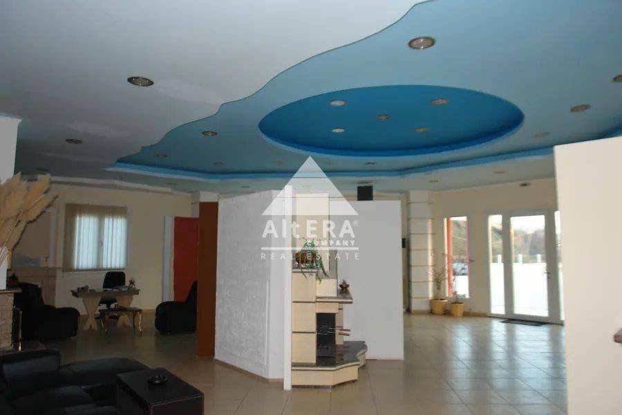 Εσωτερικά το κτίριο περιλαμβάνει πολυτελές ταβάνι γυψοσανίδας με ιδιαίτερο design και κρυφό φωτισμό. Στον χώρο αυτό υπάρχει ένας εκθεσιακός χώρος 120 τ.μ., δύο γραφεία και ένας επιπλέον προσωπικός χώρος τα οποία καταλαμβάνουν συνολική έκταση 80 τ.μ., ενώ όλο το κτίριο έχει συνολικά 3 WC. Όλο το οικόπεδο είναι Ασφαλτοστρωμένο και ο Χώρος του κτίσματος είναι ιδιαίτερα ενισχυμένος με υποδομή (μπετόν. Εξωτερικά, υπάρχει περίφραξη με μπετόν και μασίφ κάγκελο με πόρτα 10 μέτρων ελεγχόμενη ηλεκτρονικά (τηλεκοντρόλ) καθώς και γεώτρηση. Υπάρχει υποδομή ράμπας.