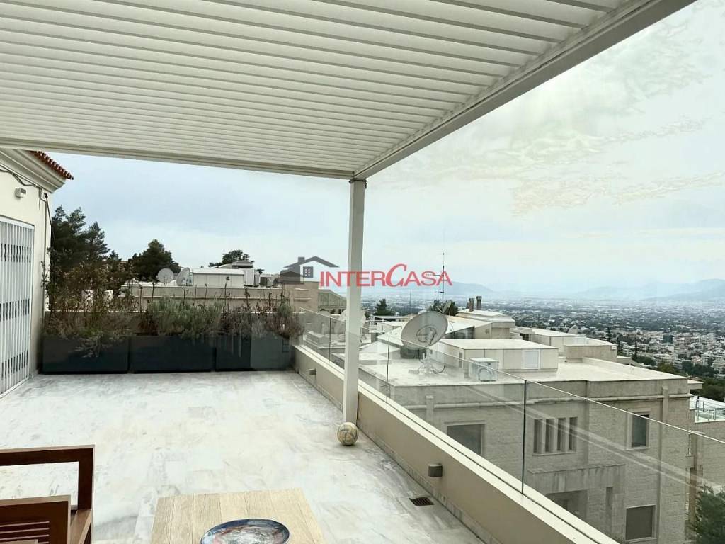 ΚΗΦΙΣΙΑ (ΠΟΛΙΤΕΙΑ) 365τμ δίπατο οροφοδιαμέρισμα, 1ου+2ου ορόφου, με καταπληκτική θέα και μεγάλη βεράντα με βιοκλιματική πέργκολα, διαθέτει στο πάνω επίπεδο των 250τμ τεράστιο ψηλοτάβανο καθιστικό, κουζίνα, wc, 2΄υπνοδωμάτια, 2 μπάνια, πάνω από το σαλόνι υπάρχει ένα χώρος με μπάνιο τύπου σοφίτας για γραφείο ή υπνοδωμάτιο και στο κάτω επίπεδο των 115τμ με ανεξάρτητη είσοδο, καθιστικό, μικρή κουζίνα, 2 υπνοδωμάτια, μπάνιο. Τέλος διαθέτει 2 υπαίθρια πάρκινγκ, αποθήκη, ασανσέρ, συναγερμό, πόρτα ασφαλείας.