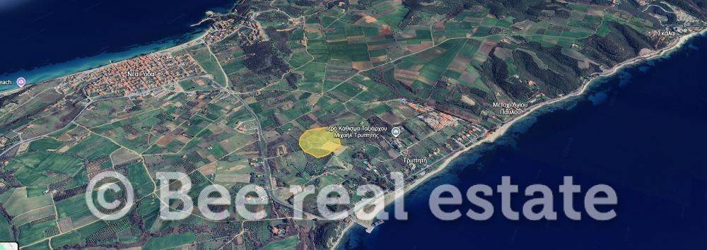 Στρατηγική επένδυση στην Τρυπητή: 21,5 Στρέμματα με 5 Αρτιότητες – 370μ. από τη Θάλασσα Σε μία από τις ελάχιστες διαθέσιμες εκτάσεις αυτού του μεγέθους που παραμένουν άρτιες και οικοδομήσιμες στην εκτός σχεδίου ζώνη, διατίθεται προς πώληση ένα στρατηγικό αγροτεμάχιο 21.490 τ.μ. στην Τρυπητή. Με τεράστια πρόσοψη 223 μέτρων και άμεση πρόσβαση σε υποδομές, το ακίνητο αποτελεί την απόλυτη επιλογή για κατασκευαστές και επενδυτές τουριστικών projects. Βασικά Χαρακτηριστικά: * Εμβαδόν: 21.490 τ.μ. (Άρτιο & Οικοδομήσιμο). * Πρόσοψη: 222,9 μέτρα σε δρόμο. * Απόσταση από Θάλασσα: Μόλις 370 μέτρα. * Υποδομές: Πλήρως εξοπλισμένο με δίκτυα Ρεύματος και Νερού. * Μορφολογία: Επίπεδο με ήπια θέα, προσφέροντας χαμηλό κατασκευαστικό κόστος. * Τοποθεσία: Στρατηγική εγγύτητα στα Νέα Ρόδα (1.200μ.) και την Ουρανούπολη (9χλμ.). Αναπτυξιακές Προοπτικές Το ακίνητο προσφέρει πολλαπλά σενάρια υψηλής κερδοφορίας: Οικιστική Ανάπτυξη (5 Villas): Δυνατότητα κατάτμησης σε 5 αρτιότητες με συνολική δόμηση έως 600 τ.μ. Ιδανικό για συγκρότημα 5 ανεξάρτητων πολυτελών κατοικιών/μεζονετών. Hotel Development: Η έκταση μπορεί να αποδώσει άδειες για ξενοδοχειακές μονάδες με δόμηση που ξεπερνά τα 4.000 τ.μ., καθιστώντας το ιδανικό για Apartment Hotel ή Luxury Resort. Επενδυτική Αξία: Το κόστος γης ανά τετραγωνικό μέτρο δόμησης (για κατοικία) εκτιμάται σε ιδιαίτερα ανταγωνιστικά επίπεδα, προσφέροντας εξαιρετική αποδοτικότητα για τον κατασκευαστή. Τοποθεσία & Πλεονεκτήματα Η Τρυπητή αποτελεί τον κομβικό σταθμό προς το Άγιο Όρος και την Αμμουλιανή, εξασφαλίζοντας: Σταθερή Τουριστική Κίνηση: Υψηλή ζήτηση για διαμονή και συνεχής ανάπτυξη της περιοχής. Άμεση Πρόσβαση: Στον οδικό άξονα Ουρανούπολης – Ιερισσού και σε οργανωμένες παραλίες, εστίαση και Super Markets. Τιμή πώλησης: 380.000€