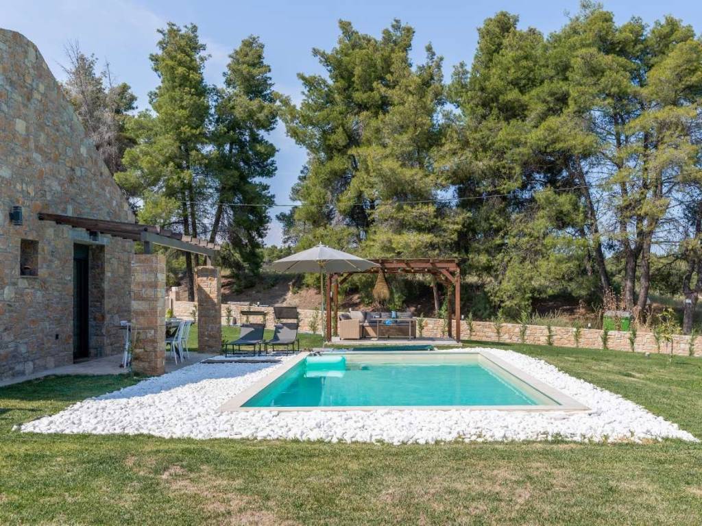 Πολυτελής ανεξάρτητη βίλλα με ιδιωτική πισίνα (Sani Stone Ikos) ως εξοχική κατοικία ενοικιάζεται με ελάχιστο χρόνο ενοικίασης τις 5 ημέρες και μέγιστο τις 30 ημέρες. Η τιμή διαμορφώνεται ανάλογα με το μήνα ενοικίασης. Διαθέτει 3 υπνοδωμάτια με διπλά κρεββάτια, εξτρα παιδικό κρεββάτι στην κρεββατοκάμαρα. Κάθε δωμάτιο έχει ανεξάρτητο δικό του μπάνιο και υπάρχει και wc επισκεπτών στο ισόγειο. Υπάρχει πλήρης κουζίνα με όλα τα ηλεκτρικά, καθώς και ψησταριά για barbecue στον εξωτερικό χώρο. Διαθέτει δωρεάν wifi εσωτερικού και εξωτερικού χώρου πισίνας, κιόσκι και εξωτερικό ντουζ. Άφθονο ζεστό νερό από 2 ηλιακούς συλλέκτες, μεγάλος ιδιωτικός χώρος στάθμευσης οχημάτων με ανεξάρτητη είσοδο με τηλεχειρισμό. Μπορεί να φιλοξενήσει άνετα έως 6 ενήλικες και 1 ή 2 παιδιά. Διαθέτει κλινοσκεπάσματα και είδη καθαρισμού. Βρίσκεται σε εξαιρετική ήσυχη τοποθεσία κοντά στο ξενοδοχείο Simantro στο Σάνη Χαλκιδικής και σε κοντινή απόσταση από το Sani Resort. Πληροφορίες στα 6972 ***/*******,