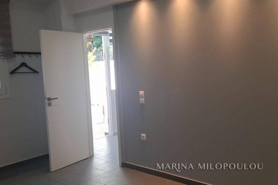 Βούλα -Δικηγορικά, Ισόγειο διαμέρισμα 58 τμ πλήρως ανακαινισμένο. Ωραία οικιστική γειτονιά με ήσυχο περιβάλλον. Χώρος υποδοχής ενιαία κουζίνα, με εντοιχισμένη εστία, φούρνο και απορροφητήρα, 1 μεγάλο υ//δ με πολλές ντουλάπες, 1 ευρύχωρο μπάνιο, έξοδος σε ιδιωτική αυλή σε συνέχεια του parking. Διαθέτει διπλά τζάμια, 2 κλιματιστικά, κρυφούς φωτισμούς, ηλεκτρικά ρολά, δάπεδο από γρανίτη, 2 θέσεις στάθμευσης εν σειρά. Αποτελεί μέρος ωραίας διπλοκατοικίας, βρίσκεται σε ήσυχο σημείο κοντά σε στάση λεωφορείου της τοπικής γραμμής. Χωρίς κοινόχρηστα. Απόσταση 1 χλμ από το κέντρο της Βούλας, 1,5 χλμ από την θάλασσα, 1,8 χλμ από την Β΄πλαζ που αναπλάθεται στο ABC beach club.