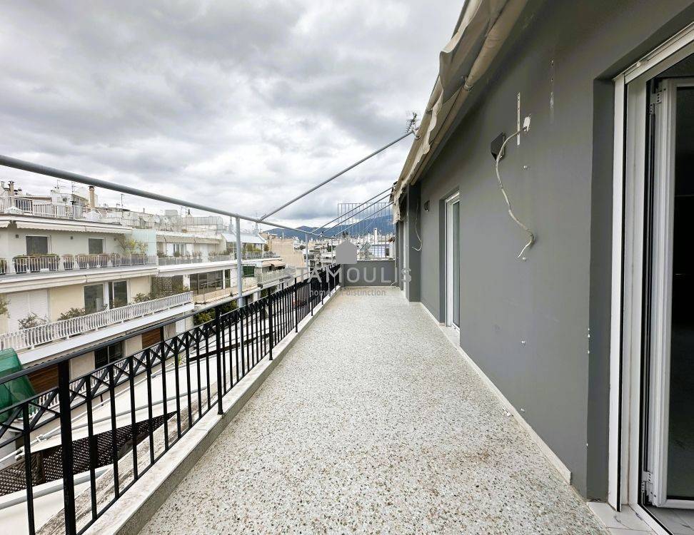 Ανακαινισμένο, ρετιρέ διαμέρισμα 60 τμ, 6ου ορόφου, με μεγάλη βεράντα, πλησίον πλατείας. Αποτελείται από 1 Υ/Δ, μπάνιο, χώρο υποδοχής με kitchenette, μπάνιο, κουφώματα αλουμινίου με διπλά τζάμια και πόρτα ασφαλείας.