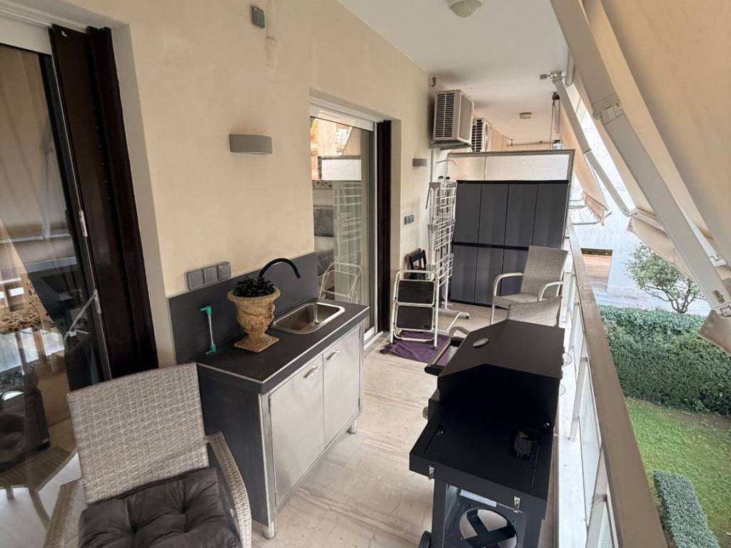 Διατίθεται πλήρως ανακαινισμένο και εξοπλισμένο διαμέρισμα με όλες τις ηλεκτρικές συσκευές. Διαθέτει μπαλκόνι με κατασκευασμένο BBQ, νιπτήρα και θερμαινόμενη σόμπα εξωτερικού χώρου. Βρίσκεται πολύ κοντά σε στάσεις τραμ και λεωφορείου και μόλις 500μ. από τη θάλασσα.