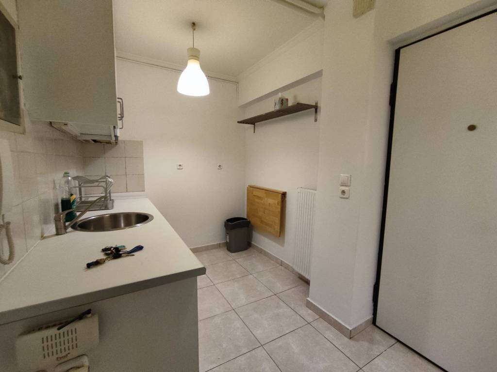 διαμέρισμα - studio, ανακαινισμένο, αποτελούμενο από ένα δωμάτιο, κουζίνα και μπάνιο. Έχει ανακαινισμένη κουζίνα και μπάνιο, πόρτα ασφαλείας, πλακάκια σε όλους τους χώρους, ένα κλιματιστικό, εντοιχισμένη ντουλάπα, ξύλινα κουφώματα και μονά τζάμια. Κατεβαίνει 8 σκαλιά από την είσοδο της πολυκατοικίας. Βρίσκεται σε πολύ καλή τοποθεσία, κοντά σε μετρό, σε περιοχή που έχει τοπική αγορά, σούπερ μάρκετ κλπ. Είναι κατάλληλο για επένδυση.