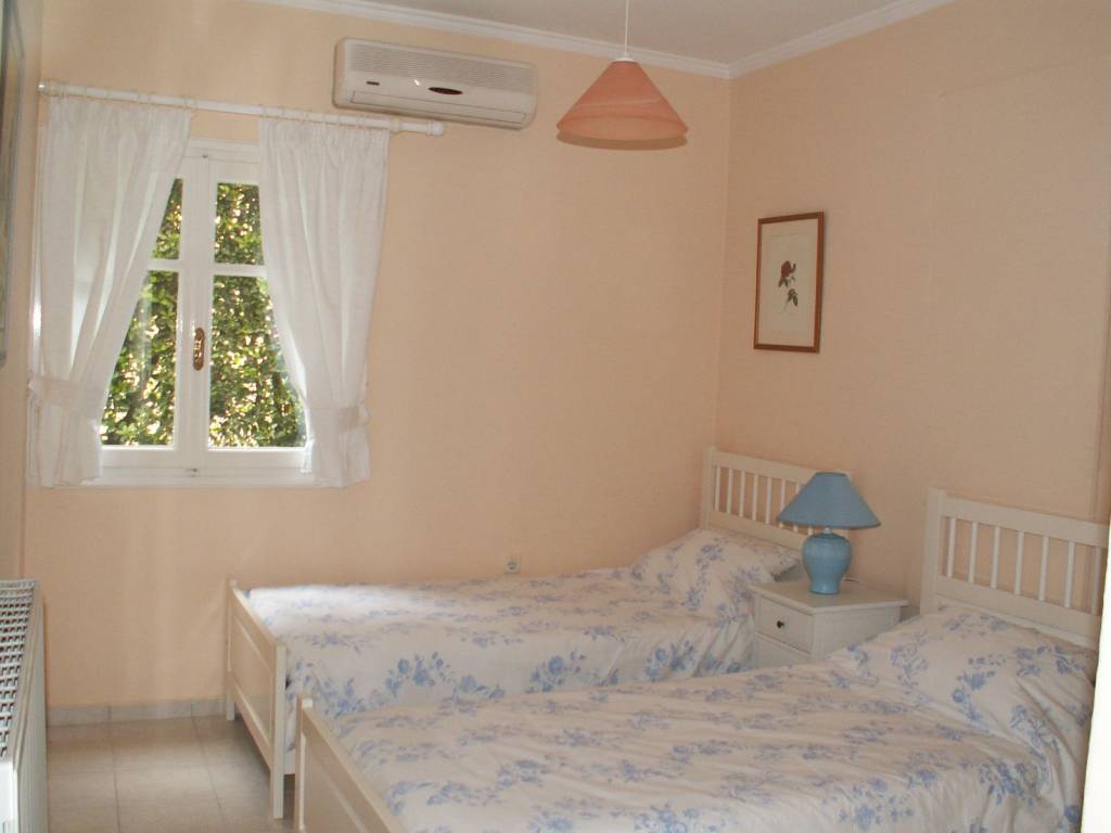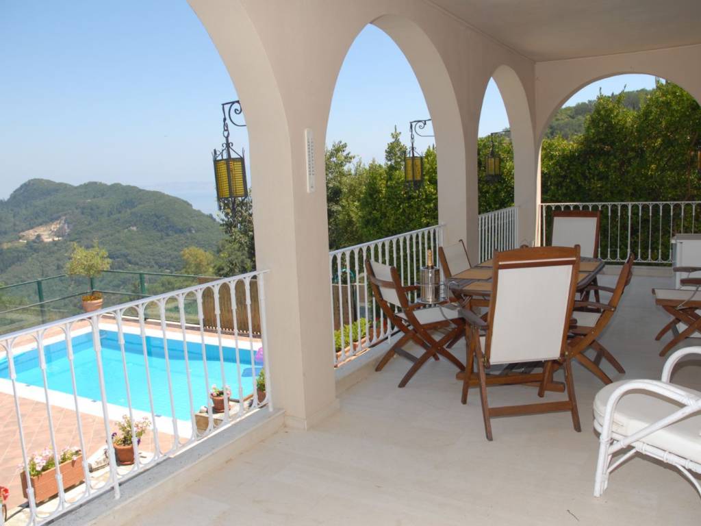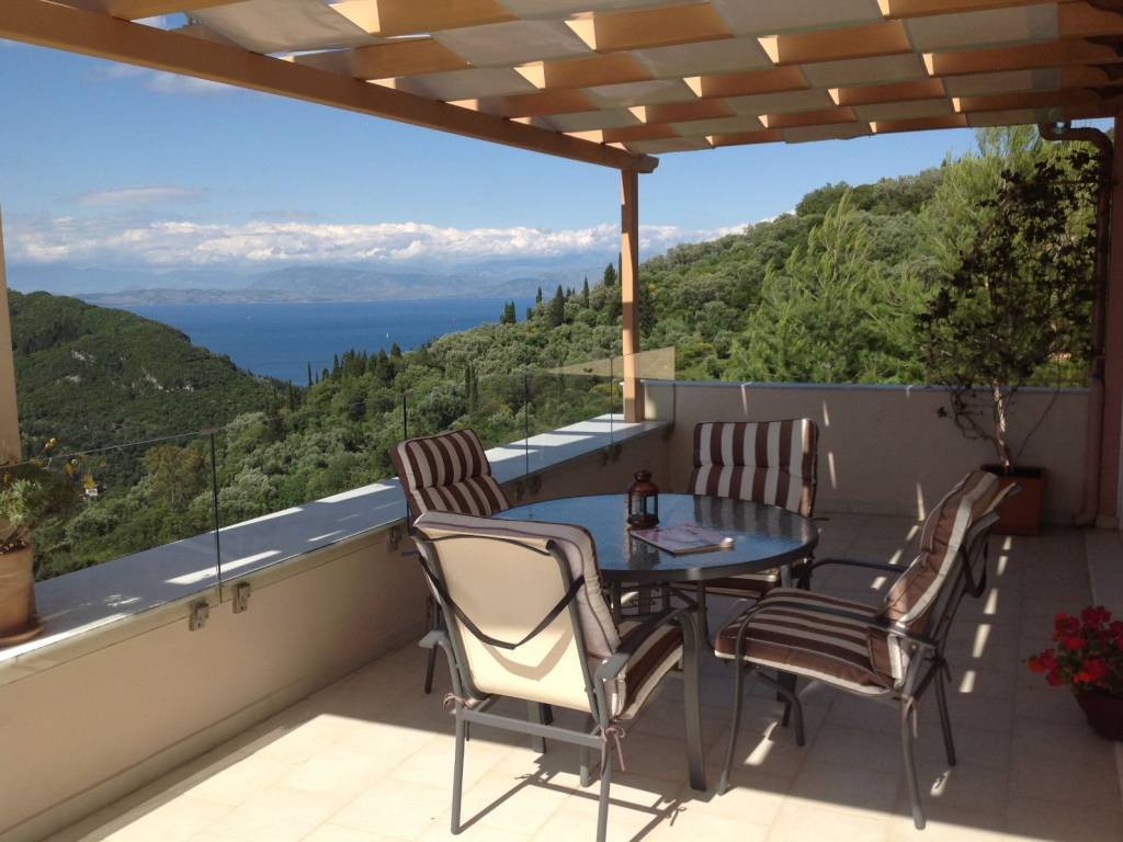 Μία καλοχτισμένη βίλλα σε επικλινή ήσυχη εξοχική τοποθεσία με υπέροχη θέα σε βουνό και θάλασσα. Βρίσκεται στην άκρη του χωριού Σταυρός του (πρώην) Δήμου Αχιλλείων . Η περιοχή είναι εντελώς ανέγγιχτη από τον τουρισμό και προσφέρεται για ωραίες πεζοπορίες όπου σε πολύ κοντινές αποστάσεις μπορεί κανείς να θαυμάσει υπέροχα σημεία της εξοχής που συνδυάζουν την ομορφιά του τοπίου με υπέροχη θέα του νησιού και των απέναντι ακτών και βουνών. Το σπίτι αποτελείται από τον πρώτο όροφο στον οποίο βρίσκεται το σαλόνι ,το γραφείο ,η τραπεζαρία και η κουζίνα καθώς επίσης μια βεράντα με τζαμαρία με θέα στο βουνό του Αχιλλείου ,την πόλη της Κέρκυρας και την θάλασσα. Στον κάτω όροφο βρίσκονται ένα ευρύχωρο χωλ ,τα τρία υπνοδωμάτια ,το μπάνιο και ένα ακόμη WC με ντουζ . Από την βεράντα των δύο υπνοδωματίων και του χωλ υπάρχει η πρόσβαση στον κήπο και την πισίνα. Στον δεύτερο όροφο υπάρχει ευρύχωρο game room / 2ο σαλόνι με πιγκ- πογκ , ποδοσφαιράκι και επιτραπέζια παιγνίδια με μεγάλη βεράντα με πλούσια θέα. Διατίθεται επιπλωμένο, για μακροπρόθεσμη ενοικίαση ή σεζον. Η θέση του ακινήτου 13 χιλιόμετρα από την πόλη της Κέρκυρας και το αεροδρόμιο αλλά και μόλις 5 χιλιόμετρα από τις Μπενίτσες και 20 λεπτά από την Μεσσογγή το καθσιτούν ιδανικό για οικογένεια εποχιακών υπαλλήλων μεγάλων ξενοδοχιακών μονάδων.