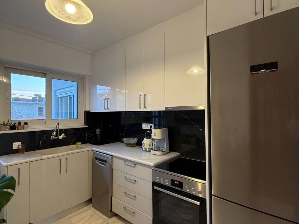 οροφοδιαμέρισμα 115 τ.μ., 1ου ορόφου, κατασκευής 2005 και μερικώς ανακαινισμένο (κουζίνα και μπάνιο) τον Νοέμβριο του 2023 σε 3όροφη οικογενειακή πολυκατοικία. Το ακίνητο ξεχωρίζει για τους άνετους χώρους του, την καλή διαρρύθμιση και την άμεση πρόσβαση σε κεντρικές οδούς και μέσα μεταφοράς. Συμπεριλαμβάνονται όλες οι ηλεκτρικές συσκευές (πλυντήριο ρούχων, κουζίνα, ψυγείο, πλυντήριο πιάτων).