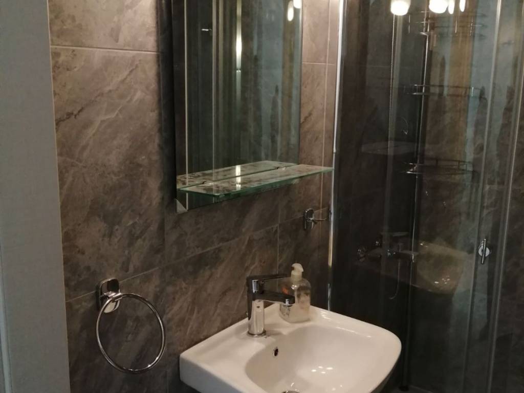 Εξαιρετικό Νεόδμητο Φωτεινό Διαμέρισμα 85 μικτών τ.μ. στην Αρετσού, Καλαμαριάς (150μ. από τη Θάλασσα) με νοτιοδυτικό προσανατολισμό Λίγα μόλις βήματα από την παραλία της Αρετσούς, ενοικιάζεται προνομιακό, νεόδμητο διαμέρισμα 2ου ορόφου, 85 μικτών, 64 καθαρών τ.μ. Βρίσκεται σε μια ήσυχη, ιδιόκτητη τετραώροφη οικοδομή με μόλις 3 διαμερίσματα (μία μεζονέτα και δύο οροφοδιαμερίσματα). Αποτελείται: -Από δυο μεγάλα φωτεινά Δωμάτια, εργονομική μοντέρνα Σαλοκουζίνα και Μπάνιο με πατάρι. -Διαμπερές, με μεγάλο μπαλκόνι στη πρόσοψη της οικοδομής και μικρότερο μπαλκόνι στην πίσω όψη. Θέρμανση: Αυτόνομη θέρμανση με φυσικό αέριο (θέρμανση και ζεστό νερό) Διαθέτει: -Θωρακισμένη πόρτα ασφαλείας. -Εξωτερικά ενεργειακά συρόμενα κουφώματα αλουμινίου διπλών υαλοπινάκων και σήτες. -Κλιματιστικό στο σαλόνι. -Μία τρίφυλλη ντουλάπα και μια μεγάλη συρταριέρα στο ένα δωμάτιο. -Μία δίφυλλη ντουλάπα στο πλατύσκαλο του ορόφου στο κλιμακοστάσιο. -Νέου τύπου μετρητή φυσικού αερίου με τηλεματική λήψη των μετρήσεων. -Νέου τύπου ‘’έξυπνο’’ μετρητή ηλεκτρικού ρεύματος. -Parking: Μία θέση στάθμευσης σε στεγασμένο χώρο στάθμευσης. Άλλα πλεονεκτήματα: Εξυπηρετείται από τα αστικά λεωφορεία 5, 6 και 7, καθώς και από τοπική συγκοινωνία της Καλαμαριάς. Απόσταση από τη στάση 2 λεπτά. Metro. Απόσταση 10 λεπτά. Πλησίον υπάρχουν Σχολείο (Νηπιαγωγείο & Δημοτικό), δύο Super market, Φούρνος, Κρεοπωλείο και η περιοχή προσφέρει πολλές επιλογές για αναψυχή και διασκέδαση. Τιμή μηνιαίου ενοικίου 790 ευρώ. Το διαμέρισμα διατίθεται ΜΟΝΟ για κύρια κατοικία. Δεν επιτρέπεται η διατήρηση ζώων συντροφιάς. Για περισσότερες πληροφορίες ή ραντεβού, επικοινωνείτε με το τηλ. 6994989660 (κύριος Ζαφείρης) Για επίσκεψη στο διαμέρισμα Απαραίτητη η επίδειξη Αστυνομικής Ταυτότητας. Μεσίτες αποκλείονται και Απαγορεύεται ρητά η αναδημοσίευση της παρούσας αγγελίας και των φωτογραφιών από μεσιτικά γραφεία.