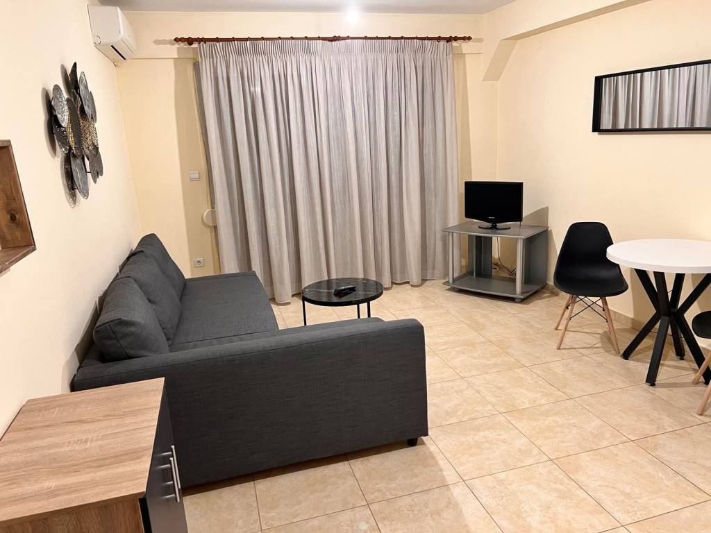 Διαμέρισμα 1ου υπεριψωμένου ορόφου , 55τμ, με σαλοκουζίνα, 1υπνοδωμάτιο κ 1μπάνιο. Θερμαίνεται με 1aircondition στο σαλόνι κ 1aircondition στο υπνοδωμάτιο. Πολύ καλή τοποθεσία, κοντά σε φαρμακείο, φούρνο, γιατρούς. Διαθέτει σίτες στις μπαλκονόπορτες. Μπαλκόνι με θέα τις 6 βρύσες. Επιπλωμένο με καινούριες ηλεκτρικές συσκευές(πλυντήριο ρούχων, ψυγείο, κουζίνα). Ιδανικό για ένα ή δύο άτομα.
