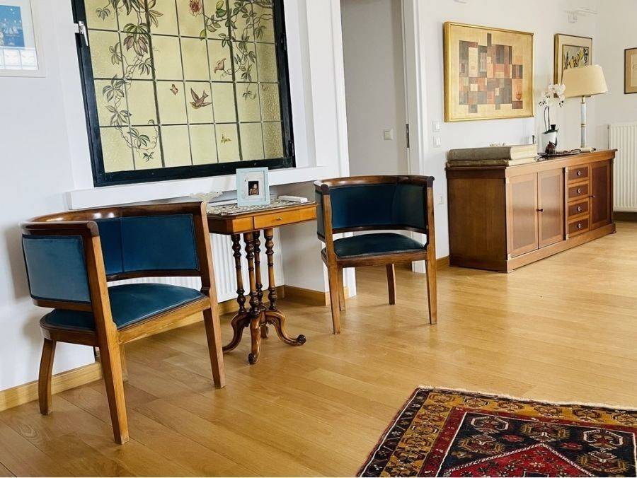 Πλατεία Παπαδιαμάντη διαμέρισμα 138 τμ 4ου ορόφου ρετιρέ,κατασκευής 2010. Το διαμέρισμα αποτελείται από μεγάλο σαλόνι με τζάκι,κουζίνα,3 υ/δ το 1 master,2 μπάνια,μεγάλες βεράντες με θέα,είναι πολύ φωτεινό,δρύινα δάπεδα παντού,διαθέτει κλειστό ατομικό πάρκινγκ ισογείου για 2 αυτοκίνητα και αποθήκη. Επίσης διαθέτει αποκλειστική χρήση 140 τμ στην ταράτσα για roof garden με ιδιωτική είσοδο,επίσης το ασανσέρ ανεβαίνει ως την ταράτσα.Το διαμέρισμα έχει κατοικηθεί ελάχιστα και είναι σαν καινούριο. Βρίσκεται σε ωραίο σημείο,πλησίον της πλατείας Παπαδιαμάντη και κοντά στον ΗΣΑΠ. Η θέση στον χάρτη είναι ενδεικτική.