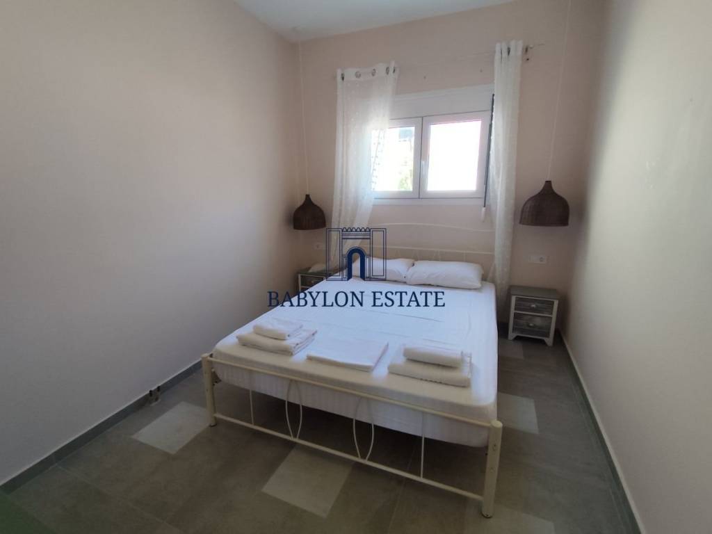 Η κατοικία παραδίδεται πλήρως επιπλωμένη και εξοπλισμένη με όλες τις οικιακές και ηλεκτρικές συσκευές. Εσωτερικά αποτελείται από δύο άνετα υπνοδωμάτια, έναν ενιαίο χώρο καθιστικού και κουζίνας, καθώς και ένα μπάνιο. Για τη μέγιστη άνεση των ενοίκων, διαθέτει κλιματιστικά σε όλους τους χώρους, ηλιακό θερμοσίφωνα για εξοικονόμηση ενέργειας, καθώς και σύγχρονα κουφώματα αλουμινίου με σίτες.