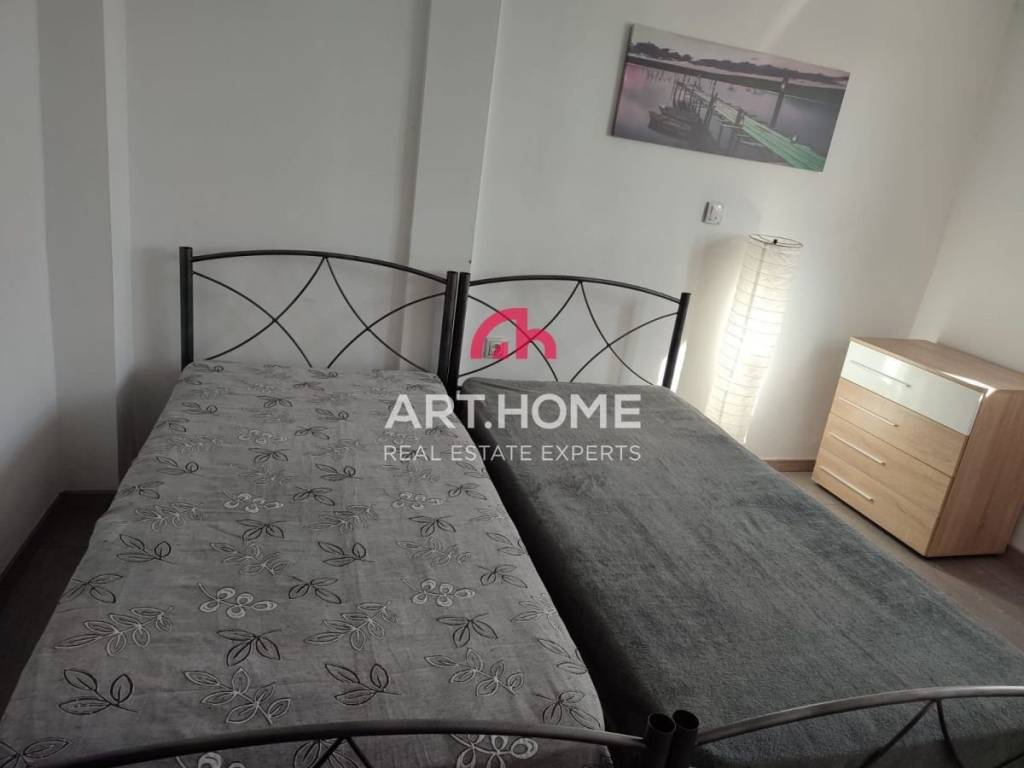 ΣΤΑΘΜΟΣ ΤΡΕΝΩΝ, ενοικιάζεται επιπλωμένο διαμέρισμα 80τμ, στον 6ο όροφο, σε οικοδομή κατασκευής του 1980 με ασανσέρ. Αποτελείται από 2 υπνοδωμάτια, 1 σαλοτραπεζαρία, χολ, μπάνιο και βεράντες. Διαθέτει ατομικό λέβητα πετρελαίου, 2 κλιματιστικά, θωρακισμένη πόρτα ασφαλείας, συνθετικά κουφώματα ενεργειακής κλάσης με διπλούς υαλοπίνακες, δάπεδα από κεραμικά πλακίδια και τέντες. Διατίθεται επιπλωμένο και με ηλεκτρικές συσκευές. Βρίσκεται πολύ κοντά στο τερματικό σταθμό του μετρό με άμεση πρόσβαση στο κέντρο της πόλης.