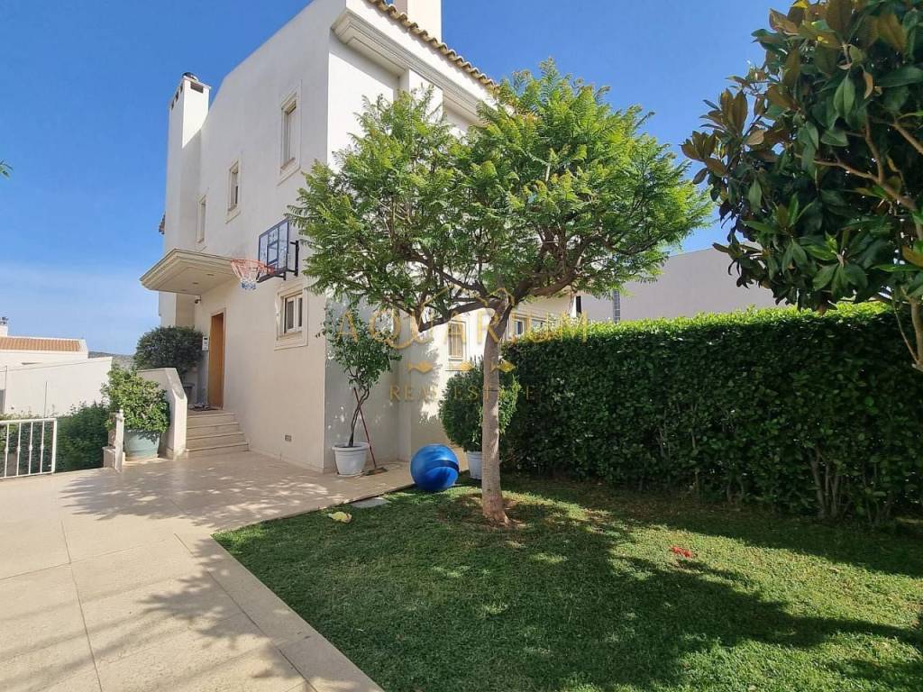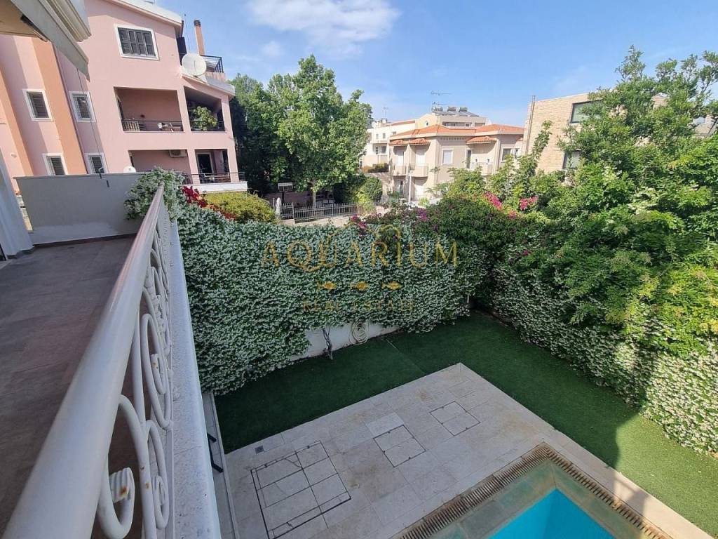 ΒΑΡΗ - σε αριστα διαμορφωμενη γειτονιά και κοντα στην τοπικη αγορά, ανεξαρτητη μεζονέτα 230 τμ , 3 επιπεδων , με ασανσερ. Συγκεκριμένα, σε οικοπεδο 550 τμ, υπαρχουν 2 πανομοιότυπες μεζονετες 230 τμ εκαστη, με συσταση καθετου ιδιοκτησιας που τους παρεχει ανεξαρτητο ιδιοκτησιακο καθεστός. Σε καλη κατασταση, με μεγαλο κηπο και πισινα στον Ανατολικο-μεσημβρινο προσανατολισμό. Στο υπερυψωμενο ισογειο , καθιστικο με τζακι, τραπεζαρια, χωριστη μεγαλη κουζινα με δικη της τραπεζαρια και βεραντα, wc, ασανσερ, κλιμακοστασιο και ευρυχωρη βεραντα με θεα στον κηπο και την πισινα. Στον οροφο,3 υ/δ -το ενα master- ενα ακομη μπανιο , βεράντες. Υπαρχει επισης σοφιτα - παταρι 40 τμ, η προσβαση γινεται με σπαστη ανοιγοκλειομενη σκαλα. Στο ισόγειο που ειναι στο επιπεδο του κηπου, χωρος υποδοχης με τζακι, μπανιο, κουζινακι , αποθηκη και προσβαση απο και προς το κλειστο γκαραζ . Αυτονομια θερμανσης, κλιματισμος, συναγερμος, ηλιακος.