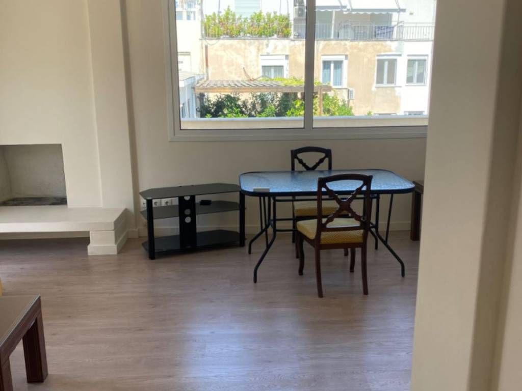 Bright renovated penthouse with large balcony in central Kolonaki close to syntagma with 2 bedrooms, one with en suite bathroom , fireplace, double glazed windows with mosquito nets. View of Lycabettus mountain . Furinished .building with doorman .