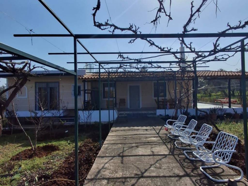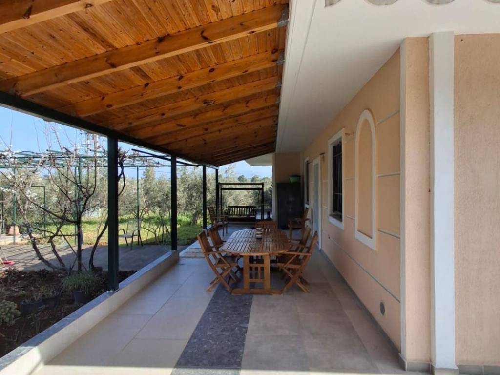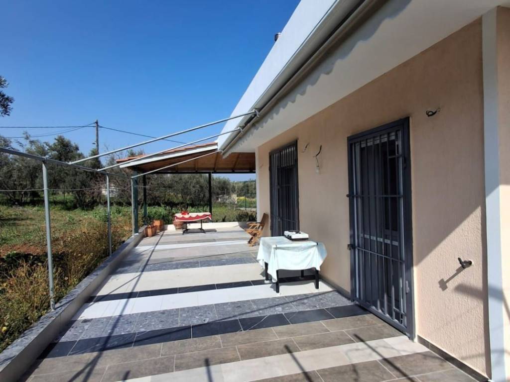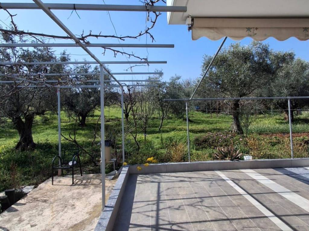 Μονοκατοικία 2 επιπέδων συνολικής επιφάνειας 254.00 τ.μ. σε οικόπεδο 4500 τ.μ. . Αποτελείται από 3 υπνοδωμάτια, σαλόνι, κουζίνα, 2 μπάνια και WC. Είναι κατασκευασμένη το 2013 με ενεργειακή κλάση Β και διαθέτει θέρμανση ατομική - πετρέλαιο, θέα σε ανοιχτό ορίζοντα, κουφώματα αλουμινίου, πατώματα από πλακάκι, πόρτα ασφαλείας, εντοιχιζόμενες ντουλάπες, πάρκινγκ, αποθήκη , κήπο, τζάκι, A/C, προεγκατάσταση συναγερμού, ηλεκτρικές συσκευές, σίτες, διπλά τζάμια, ηλιακό θερμοσίφωνα. 127 τ.μ. υπερυψωμένο ισόγειο και 127 τ.μ. στο ημιυπόγειο όπου υπάρχει ένα στούντιο με τζάκι και πολύ μεγάλη αποθήκη. Υπολείπεται υπόλοιπο αδείας περίπου 132 τ.μ.. Μεγάλος κήπος με 100 ρίζες ελιές, πορτοκαλιές, λεμονιές, αμπέλι, αχλαδιές, ροδιές. Ενεργειακό τζάκι. Παραγωγή λαδιού 300κιλά / έτος!!!!!