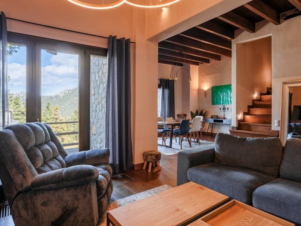 Ένα υπέροχο ακίνητο, κατασκευασμένο με υψηλές προδιαγραφές στον Παρνασσό. Αυτό το ακίνητο των 300τ.μ. αποτελείται από μια μεζονέτα και ένα ανεξάρτητο διαμέρισμα και είναι μέρος ενός θαυμάσιου οικιστικού συγκροτήματος μέσα στο δάσος. Η μεζονέτα είναι 130τ.μ. και διαθέτει καθιστικό/τραπεζαρία με τζάκι, ενιαία κουζίνα στο κύριο επίπεδο και 2 υπνοδωμάτια που μοιράζονται 1 μπάνιο στο επάνω επίπεδο. Το διαμέρισμα είναι 170τ.μ. και προσφέρει καθιστικό/τραπεζαρία με τζάκι, ενιαία κουζίνα, 1 master υπνοδωμάτιο, 2 υπνοδωμάτια που μοιράζονται 1 μπάνιο και αποθηκευτικό χώρο. Και οι δύο μονάδες προσφέρουν υπέροχη θέα στο πράσινο και ευρύχωρο χώρο στάθμευσης. Ένα φανταστικό ακίνητο σε μια ήσυχη περιοχή του Παρνασσού.