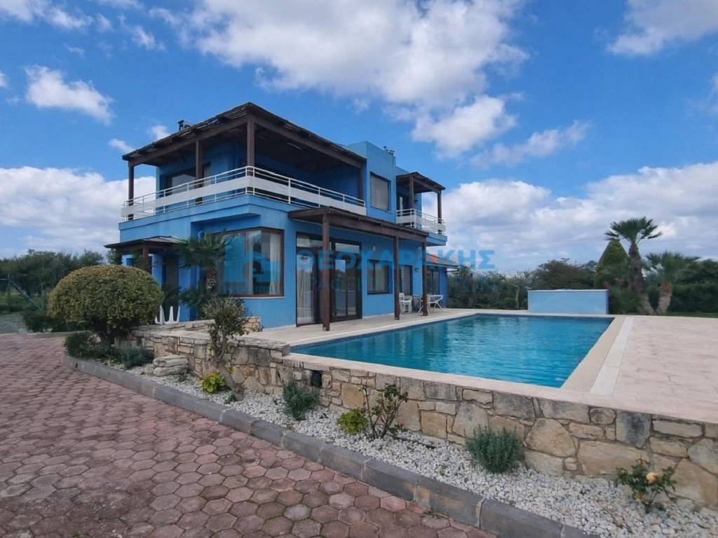 Η μπλε βίλα βρίσκεται σε απόσταση 20 λεπτά από την πόλη του Ηρακλείου. Η εξωτερικοι της χώροι είναι πλήρως διαμορφωμένοι με την πισίνα να δεσπόζει μπροστά από το καθιστικό και την περιοχή του μπάρμπεκιου. Υπάρχει μεγάλος χώρος στάθμευσης εξωτερικά. Εισερχόμενοι στην κατοικία βρισκόμαστε στο χώρο του σαλονιού και της τραπεζαρίας που είναι ενιαίος με την κουζίνα. Υπάρχει άμεση πρόσβαση στην πισίνα και στο χώρο του μπάρμπεκιου ο οποίος είναι πολύ μεγάλος! Στο ίδιο επίπεδο του ισογείου υπάρχει ένα μεγάλο master υπνοδωμάτιο με ενσωματωμένο μπάνιο. Ο χώρος του μπάρμπεκιου διαθέτει και ξυλόφουρνο, και είναι μία δεύτερη κανονική κουζίνα. Στο χώρο αυτό υπάρχει και μπάνιο. Στο υπόγειο υπάρχει χώρος γυμναστηρίου, υπνοδωμάτιο με μπάνιο και σάουνα. Ζητήστε να σας στείλουμε το βίντεο για να έχετε μία ολοκληρωμένη εικόνα του ακινήτου. Στον πρώτο όροφο υπάρχουν δύο master υπνοδωμάτια με ενσωματωμένο μπάνιο και πρόσβαση σε σκεπαστές βεράντες. Τα υλικά και ο εξοπλισμός που έχουν έχουν χρησιμοποιηθεί είναι εξαιρετικά. Θα τοποθετηθεί φωτοβολταϊκό σύστημα για την κάλυψη των ενεργειακών αναγκών της κατοικίας, οπότε η χρέωση ενέργειας θα είναι σχεδόν μηδενική. Η κατοικία μπορεί να παραδοθεί πλήρως ή μερικώς επιπλωμένη. Κωδικός ακινήτου 14509. - Γραφείο Ακινήτων Θεοχαράκη - www.eproperties.gr Όλα τα ακίνητα που βλέπετε με την υπογραφή του γραφείου μας είναι ΔΙΑΘΕΣΙΜΑ και οι πληροφορίες που αναγράφονται είναι ακριβείς. Εάν ωστόσο, διαπιστώσετε κάποια ανακρίβεια παρακαλώ ενημερώστε μας στα τηλέφωνα του γραφείου μας ή στο info@eproperties.gr