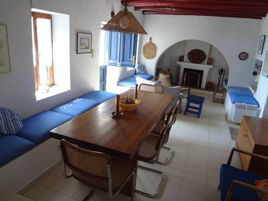 Αποβιβαζόμενοι από το φέρρυ στο λιμάνι του Γαυρίου παίρνουμε τον μοναδικό δρόμο προς την πρωτεύουσα του νησιού την Χώρα. Μετά το χωριό Αγιος Ταξιάρχης υπάρχει στα αριστερά μας ταμπέλα Πιτροφός, στρίβουμε αριστερά και ακολουθούμε τον δρόμο μέχρι σχεδόν το τέλος όπου είναι ο Ανω Πιτροφός, ακριβώς μετά την πηγή του χωριού ευρίσκεται το σπίτι το οποίο εχει μια απέραντη θέα όλη την κάτω περιοχή μέχρι την θάλασσα. Εισερχόμενοι από την κυρία είσοδο είναι το σαλόνι με καναπέδες τραπέζι στην μέση και μια πολυθρόνα, με επίπλωση πανάκριβη, λάμπες επιτραπέζιες και ένα παλαιό σκρίνιο. Στην πίσω μεριά του σαλονιού ευρίσκονται δυο κρεβατοκάμαρες, η πρώτη με διπλό κρεβάτι και μπουφέ, η δεύτερη με δύο μονά κρεβάτια, πριν από την κρεβατοκάμαρα είναι ένα μεγάλο μπάνιο. Στο αριστερό μέρος του σαλονιού ευρίσκεται η τραπεζαρία με ένα μεγάλο ξύλινο τραπέζι, και το καθιστικό με το τζάκι, από το καθιστικό υπάρχει πόρτα η οποία μας οδηγεί στην μπροστινή εξωτερική βεράντα. Απέναντι από την τραπεζαρία κατεβαίνοντας δύο σκαλάκια είναι μια μεγάλη κουζίνα πλήρως εξοπλισμένη με τραπέζι και μεγάλα ντουλάπια, υπάρχει δε άνοιγμα στον τοίχο όπου μπορούμε από την κουζίνα να σερβίρουμε στο καθιστικό. Στο τέλος της εξωτερική βεράντας και δεξιά είναι ενας στεγασμένος χώρος στον οποίο ευρίσκεται ένα μεγάλο πέτρινο τραπέζι με καθιστικό, ιδεώδες για να πάρεις πρωινό και να γευματίσεις. Δίπλα ακριβώς από την κυρία είσοδο υπάρχει ξύλινα σκαλοπάτια τα οποία οδηγούν στο κάτω επίπεδο, καθώς κατεβαίνουμε αριστερά υπάρχει μια κρεβατοκάμαρα με διπλό εντοιχισμένο κρεβάτι, δίπλα ένα μπάνιο και μετά ενας αποθηκευτικός χώρος με μια πόρτα η οποία βγαίνει σε μια τεράστια κάτω αυλή και αυτή με ανεμπόδιστη θέα μέχρι την θάλασσα. Συνεχίζοντας τον κεντρικό δρόμο από τον οποίο ήρθαμε μετά από 10 περίπου χλμ φθάνουμε στην Χώρα την πρωτεύουσα του νησιού, μπορούμε να επισκεφθούμε τα δύο μεγάλα μουσεία Γουλανδρή, όπως και αυτό του Κυδωνιαίως. Υπάρχει πλήρης αγορά, καφέ, εστιατόρια, τράπεζες και ιατρικό κέντρο.