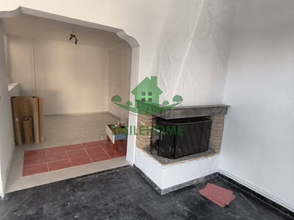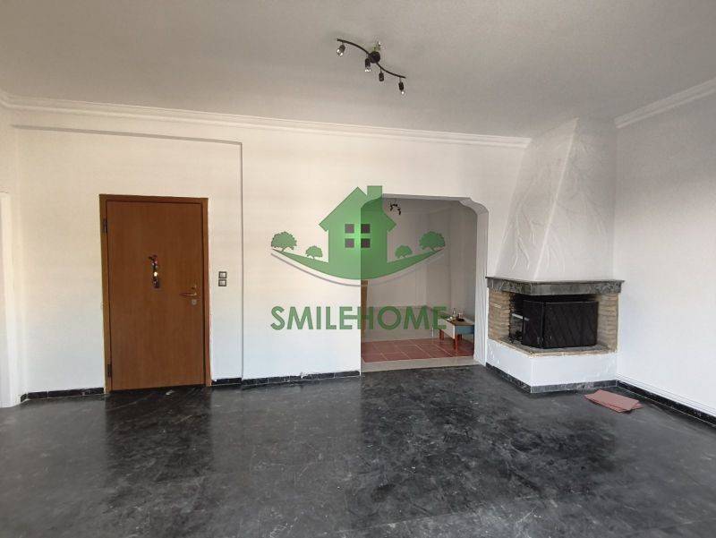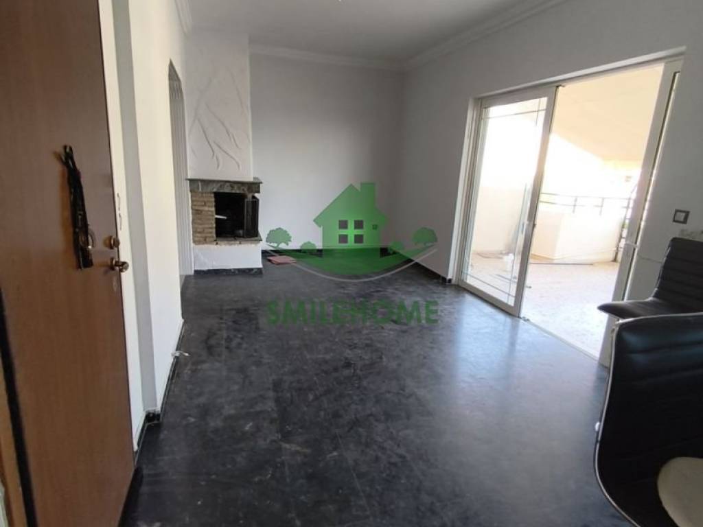 Penthouse apartment with panoramic views and a huge terrace. It consists of 2 bedrooms, a living room with fireplace, 1 multifunctional room next to the living room, kitchen, bathroom, 1 storage room inside the house and a large one on the back balcony. It has a security door, aluminum with double glazing, 3 a/c, video intercom, loft and awnings. It is located near the Peace and Friendship Stadium with direct access to the coastal road and Kifissos.
