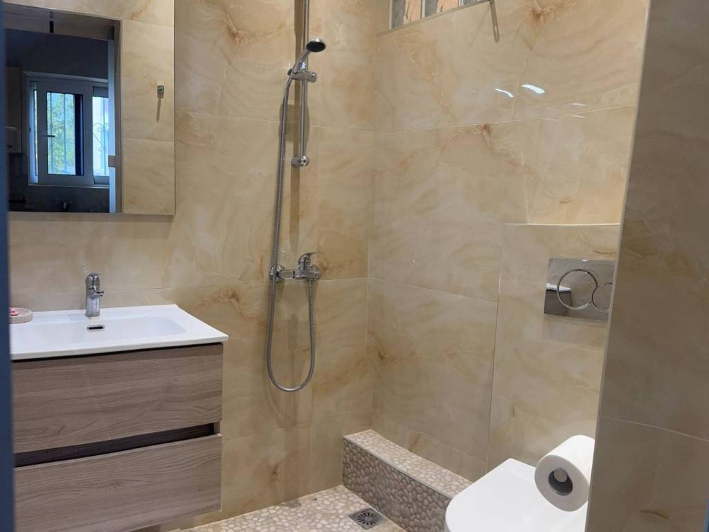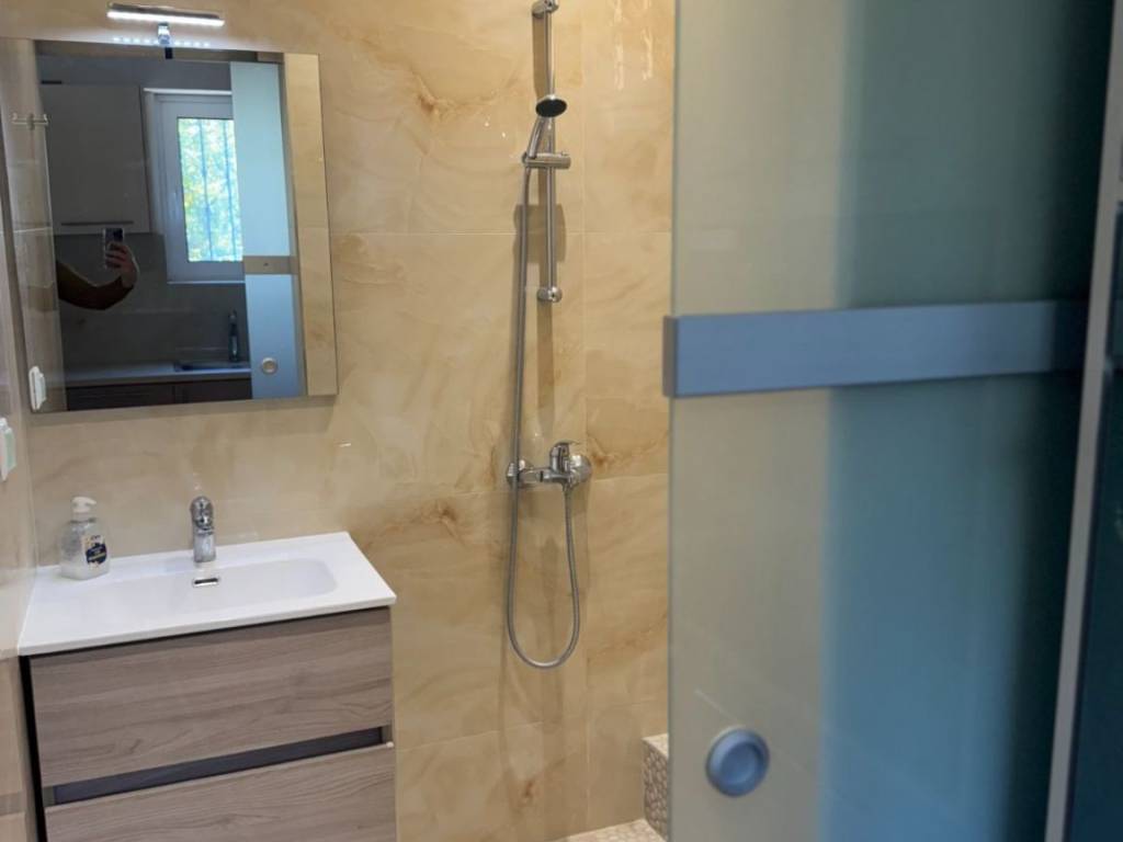 Νοικιάζεται κατοικία 40μ2 με κήπο στην καρδιά του Νέου Ψυχικού, σε ήσυχο δρόμο, πλήρως ανακαινισμένη και επιπλωμένη με ωραία αισθητική, άριστα υλικά και λειτουργική διαρρύθμιση. Αποτελείται από το σαλόνι, ένα πολύ μεγάλο υπνοδωμάτιο, ντους/WC και open plan κουζίνα με εντοιχιζόμενες ηλεκτρικές συσκευές (ψυγείο, φούρνος, εστία). Το σαλόνι διαθέτει κλιματιστικό, τηλεόραση smart 45 ιντσών, ανάκλιντρο, τραπεζάκι σαλονιού, τραπέζι κουζίνας με καρέκλες, παπουτσοθήκη με καθρέφτη, βοηθητική ντουλάπα. Το υπνοδωμάτιο διαθέτει διπλό κρεβάτι με ορθοπεδικό στρώμα, μεγάλη ντουλάπα με καθρέφτη, βιβλιοθήκη, κομοδίνο, φωτιστικά κ.α. Παντού ξύλινα δάπεδα, κουφώματα αλουμινίου με διπλά ενεργειακά - ηχομονωτικά τζάμια και σίτες, κάγκελα ασφαλείας στα παράθυρα. Αυλή και μεγάλος κήπος με διάφορα εσπεριδοειδή δέντρα, φυτά και τραπέζι-καρέκλες κήπου. Έχει άριστο ανατολικό προσανατολισμό, φωτεινή και ηλιόλουστη, ασφαλής, βρίσκεται σε ήσυχο δρόμο μέσα στο πράσινο και δίπλα σε πολύ κεντρικό σημείο Νέου Ψυχικού με super market, εστιατόρια - καφέ, αθλητικές εγκαταστάσεις, σχολεία, φαρμακεία, στάση λεωφορείου, ανάμεσα σε δύο σταθμούς μετρό «Εθνική Άμυνα» και «Χολαργός». Προτείνεται για κατοικία 1- 2 ατόμων, φοιτητές. Χωρίς κοινόχρηστα. Χωρίς μεσιτικά. Ιδιώτης. Τηλ. 6942472091