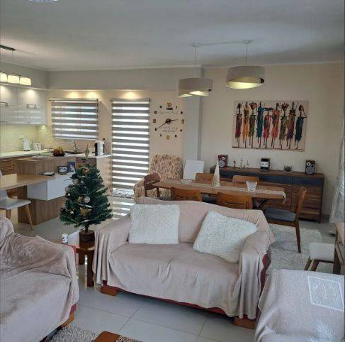 Ενοικιάζεται πολυτελής Οροφοδιαμέρισμα πλήρως επιπλωμένο και εξωπλισμένο με όλες τις ανέσεις. Το διαμέρισμα διαθέτει ηλιακό θερμοσίφωνα, κλιματιστικά, αποθήκη, βεράντα , άνετοι χώροι. Είναι πολύ φωτεινό και βρίσκεται σε εξαιρετική γειτονιά. Ενοικιάζεται για ένα έτος μόνο η και λιγότερο. Τα κατοικίδια δεν είναι δεκτά. For rent luxurious apartment fully furnished and equipped with all amenities. The apartment has a solar water heater, air conditioners, storage room, terrace, spacious rooms. It is very bright and is located in an excellent neighborhood. It is rented for one year only or less. Pets are not allowed.