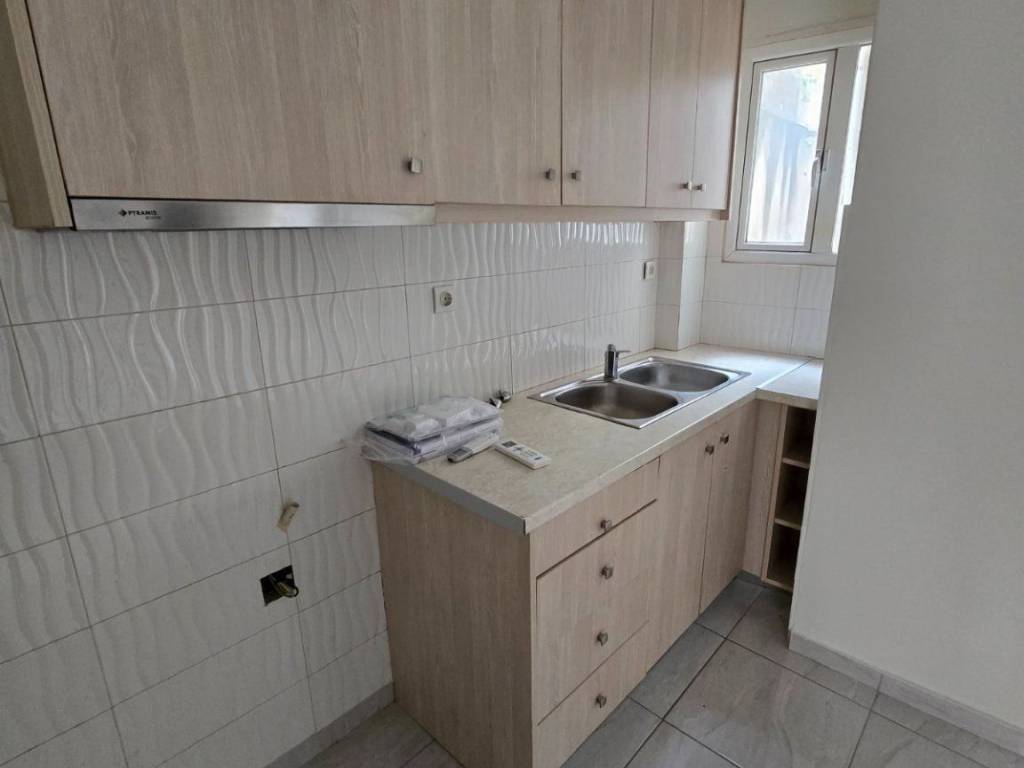 Ανακαινισμενο διαμερισμα πρωτου οροφου με 2 υπνοδωματια,κουζινα ενιαια με το σαλονι και μπανιο με γιαλινη ντουζιερα.Διαθετει 2 κλιματιστικα για θερμανση και δροσια το καλοκαιρι ενω στο σαλονι μπορει να μπει μικρο σαλονακι αλλα και τραπεζαρια κουζινας.Τα 2 υπνοδωματια εχουν μπαλκονοπορτες σε μπαλκονι στον δρομο.ΟΙΚΟΣΤΕΓΗ ΜΕΣΙΤΙΚΟ