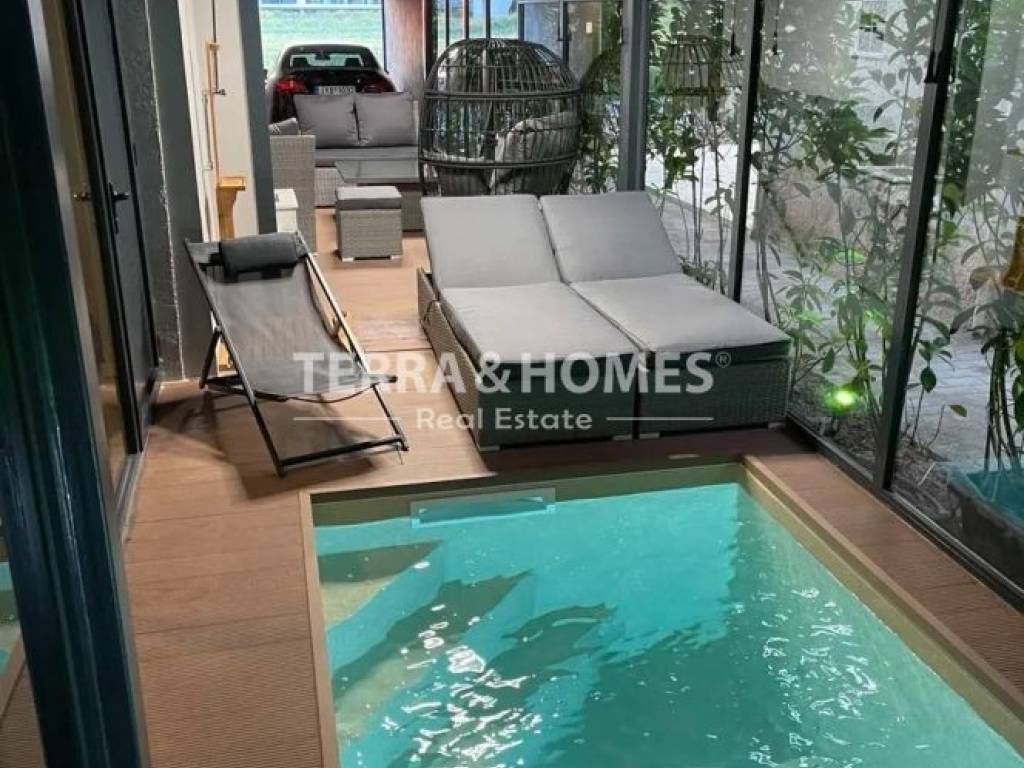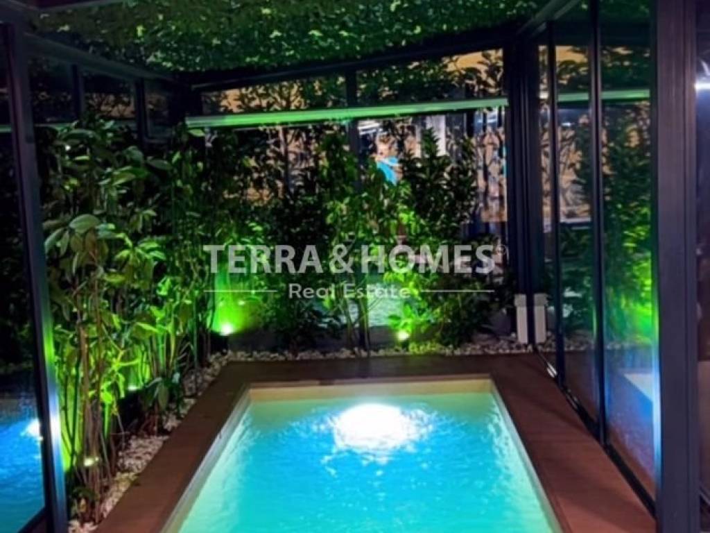 A luxurious 168-square-meter first-floor apartment in Thermi with modern and contemporary design is for sale. It consists of three spacious bedrooms, a bathroom with a jacuzzi, and a separate guest toilet. The living-dining area flows seamlessly into the kitchen which opens to the living room, offering a comfortable and functional space. The apartment features an indoor heated pool with a seating area and giant screen, creating a perfect place for relaxation and entertainment. There is also a second kitchen and grill, while the pool area is heated and cooled for year-round use. The property is equipped with an alarm system, security cameras, and modern energy-efficient window frames with double glazing. Pets are allowed, there is a storage room, and asphalt access to a main road. The apartment is a smart home with video intercom and systems ensuring comfort and security. The view is limited, and access to public transport is via bus. This is a rare opportunity for those seeking luxury, comfort, and functionality in a modern home in Thermi.