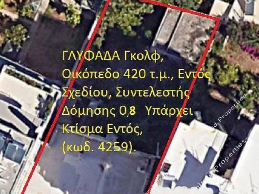 ΓΛΥΦΑΔΑ Γκολφ, Οικόπεδο 430 τ.μ., Εντός Σχεδίου, Συντελεστής Δόμησης 0,8, Πρόσοψη 15 μ., Υπάρχει Κτίσμα Εντός, Τιμή 1.200.000 Ευρώ (κωδ. 4259).