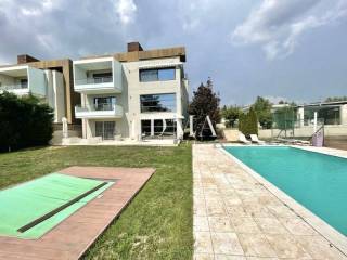 2. Ισόγειο 140 m2 µε µεγάλες τζαµαρίες πρόσοψη στον κήπο και την πισίνα . Διαθέτει µεγάλη κουζίνα µε κόριεντ πάγκο και