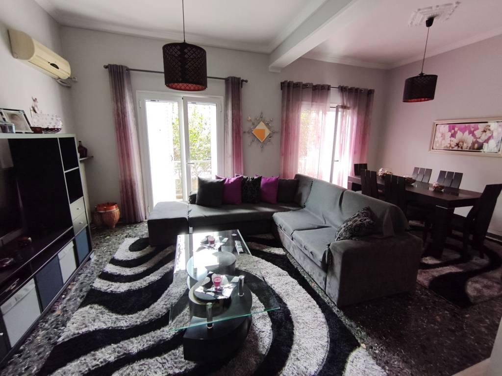 Το υπερυψωμένο ισόγειο διαμέρισμα βρίσκεται πολύ κοντά στο κέντρο του Ασπροπυργου, είναι πολύ προσεγμένης κατασκευής και έχει γίνει ανακαίνιση πριν μερικά χρόνια. Έχει πλούσια μπαλκόνια και στο μπαλκόνι της κουζίνα έχει επιπλέον χώρο αποκλειστικής χρήσης.
