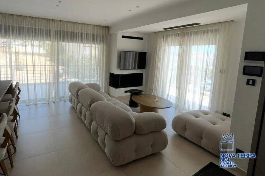 Γλυφάδα Αίγλη/ Ενοικιάζεται πολυτελές όροφοδιαμερισμα 110 m², πρώτου ορόφου, smarthome KNX, σε νεόδμητη διπλοκατοικία Ενεργειακής κλάσης Α + +. Το ακίνητο διαθέτει τρία υπνοδωμάτια, ευρύχωρο σαλόνι,τζάκι,σύγχρονη κουζίνα ,ένα μπάνιο και ένα wc. Αυτονομία θέρμανσης με αντλία θερμότητας ενδοδαπεδια ψύξη θέρμανση,fancoil. Ακόμη είναι ενεργειακά αυτόνομο με φωτοβολταϊκά πάνελ και δυνατότητα τοποθέτησης φορτιστή ηλεκτρικού αυτοκινήτου. Επιπλέον διαθέτει μπαλκόνια με ανεμπόδιστη θέα θάλασσα και βουνό 55 m². Θέση κλειστή υπόγειας στάθμευσης και αποθήκη.
