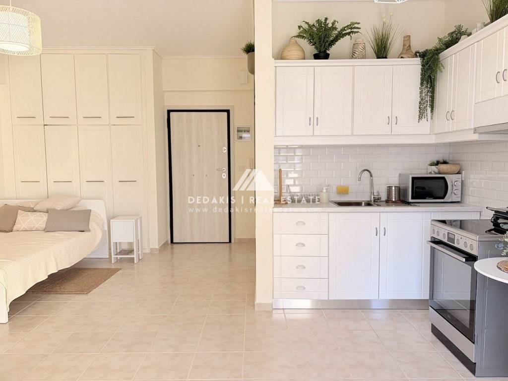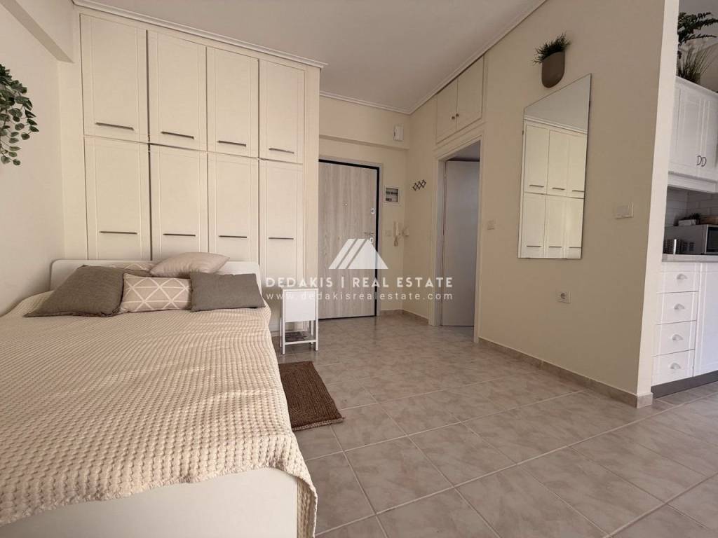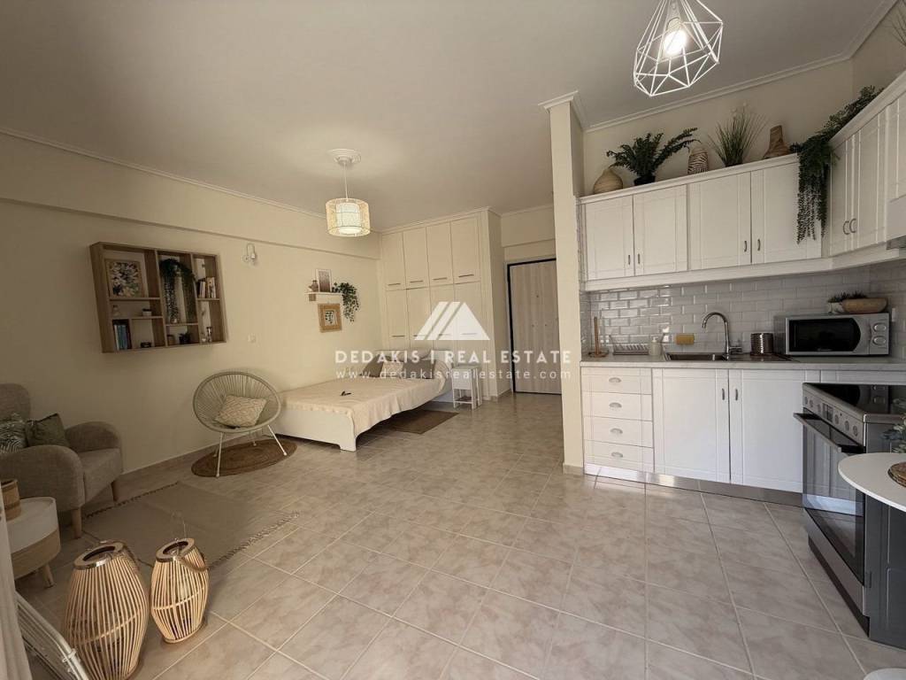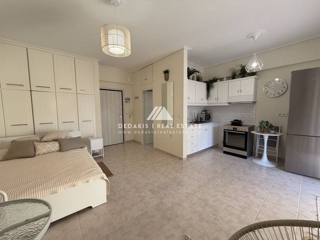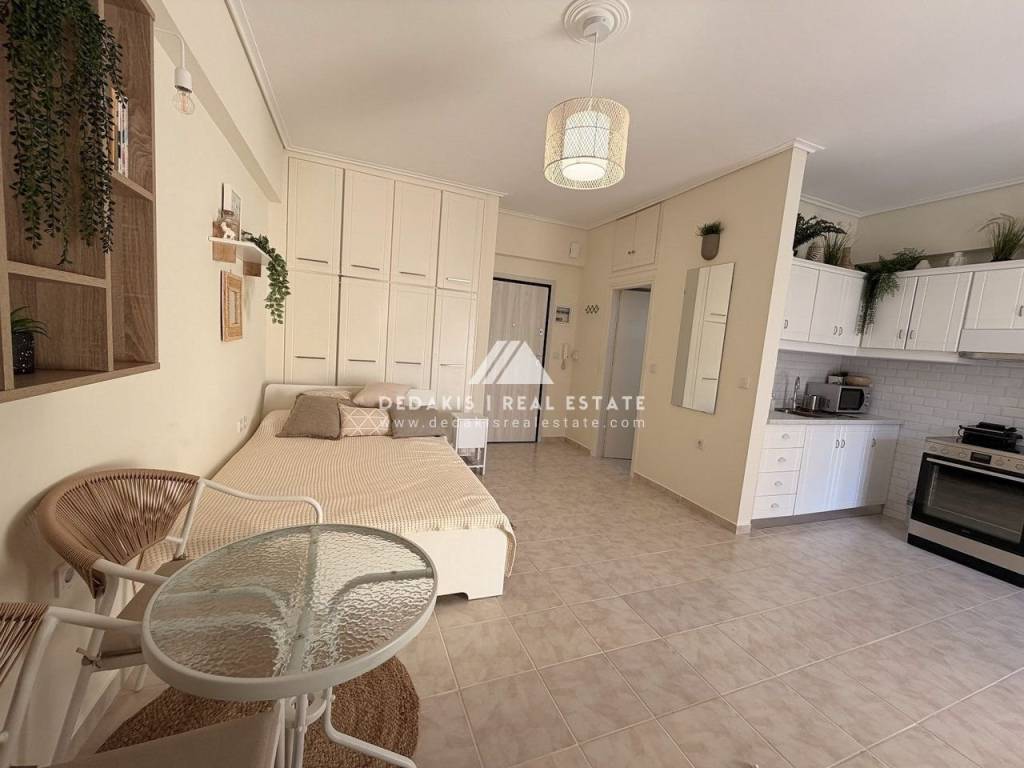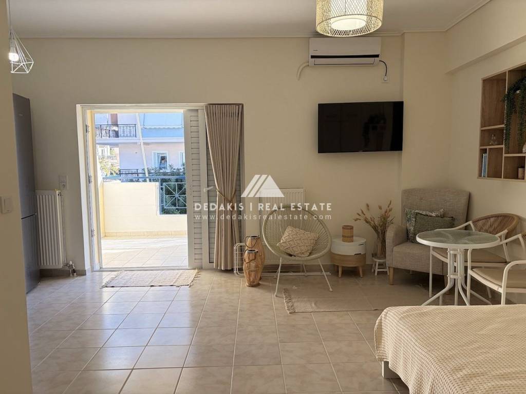 ΔΙΑΜΕΡΙΣΜΑ προς Ενοικίαση #Δ-13397 ΛΟΥΤΡΑΚΙ Διαμέρισμα 35 τ.μ., 2ου ορόφου, προσόψεως, ανακαινισμένο Ζεστό και φιλόξενο διαμέρισμα 35 τ.μ., στον 2ο όροφο, προσόψεως, σε περιποιημένο συγκρότημα κατοικιών με κοινόχρηστη πισίνα. Το διαμέρισμα αποτελείται από ενιαίο χώρο καθιστικού–κουζίνας με μοντέρνα επίπλωση, που περιλαμβάνει διπλό κρεβάτι και βοηθητικά έπιπλα. Διαθέτει ηλεκτρικές συσκευές (ψυγείο, φούρνο, ενώ θα τοποθετηθεί και πλυντήριο ρούχων). Διαθέτει: Κουφώματα αλουμινίου με σίτες και παντζούρια Τέντες Πόρτα ασφαλείας Μοντέρνο μπάνιο με ντουζιέρα και αποθηκευτικούς χώρους (εξαερισμός τοίχου) Στο συγκρότημα υπάρχει πισίνα ολυμπιακών διαστάσεων, η οποία εξυπηρετεί τους ενοίκους και τους ιδιοκτήτες της πολυκατοικίας. Επιπλέον, υπάρχει όμορφος κήπος στον ακάλυπτο χώρο και το κτίριο είναι ιδιαίτερα καθαρό και προσεγμένο. Η θέρμανση είναι αυτόνομη με πετρέλαιο, ενώ υπάρχει και κλιματιστικό (air condition). Κοινόχρηστα περίπου 50€ τον μήνα. Κατοικιδια δεν επιτρεπονται . Απαιτουνται 2 εγγυησεις μπροστα. Dedakis Real Estate 27440 28988 6946 939381 Επιπλέον χαρακτηριστικά Ανελκυστήρας Πισίνα Βαμμένο Κλιματισμός Βεράντα Πρόσοψης Φωτεινό Σίτες Τέντα Απόσταση απο τη θάλασσα: 600 μ. Πρόσβαση: Ασφαλτος Ζώνη: Οικιστική Τύπος Δαπέδων: Πλακάκι
