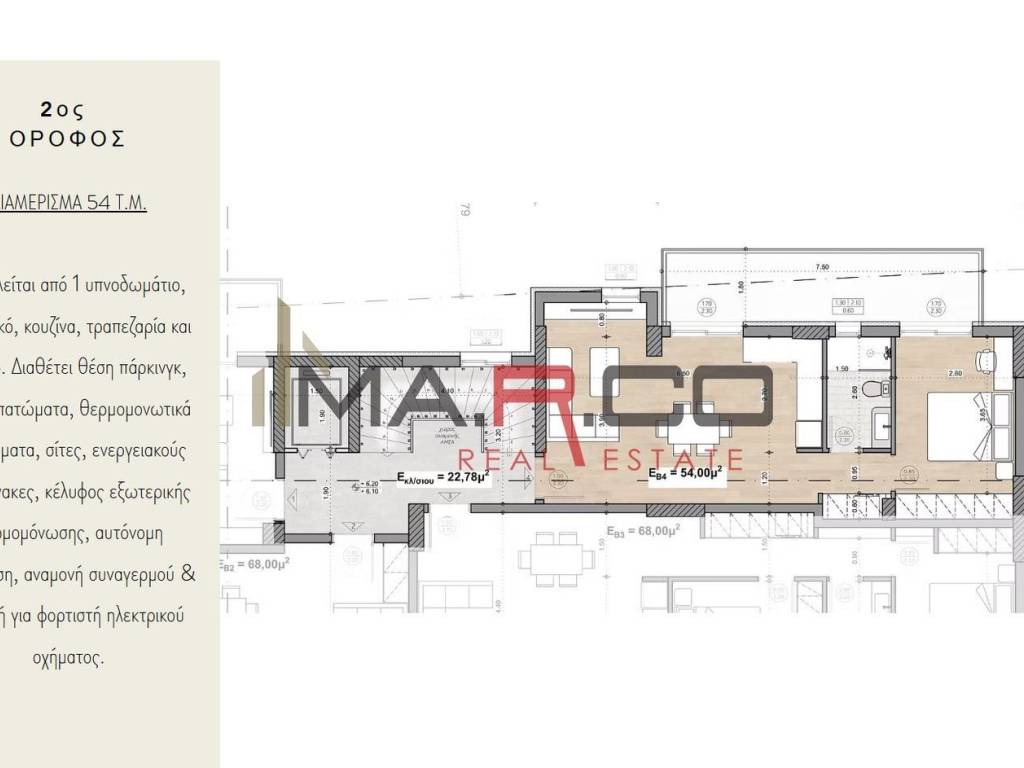 Διαμέρισμα Προς Πώληση, όροφος: 2ος, στην περιοχή: Περιστέρι - Άγιος Αντώνιος. Το εμβαδόν του ακινήτου είναι 54 τ.μ.. Αποτελείται από: 1 Υ/Δ, 1 μπάνιο/α, ενώ διαθέτει 1 θέσεις στάθμευσης (1 Στην πιλοτή). Έχει κατασκευαστεί το 2025. Η θέρμανση του ακινήτου είναι Ατομική με Αντλία θερμότητας, έχει κουφώματα Αλουμινίου, Θερμοδιακοπτόμενα με Διπλά - Ενεργειακά τζάμια, ενεργειακό πιστοποιητικό: Α+ και τα δάπεδα είναι: Πλακάκια, Ξύλο. Η κατάστασή του είναι: Υπο κατασκευή, βρίσκεται κοντά σε Μετρό, Σχολείο, Super Market, Κέντρο Πόλης, 600 Μέτρα από μετρό και έχει Βόρειοανατολικό προσανατολισμό, Αποθήκη, Πόρτα Ασφαλείας, Χωρίς Κοινόχρηστα, Νυχτερινό Ρεύμα, Τριφασικό Ρεύμα, Ηλεκτρικά ρολά, Φορτιστής αυτοκινήτου. MA.R.CO REALESTATE & CONSTRUCTION, Τηλέφωνο Επικοινωνίας: 6944855335, email: info@marco-realestate.gr