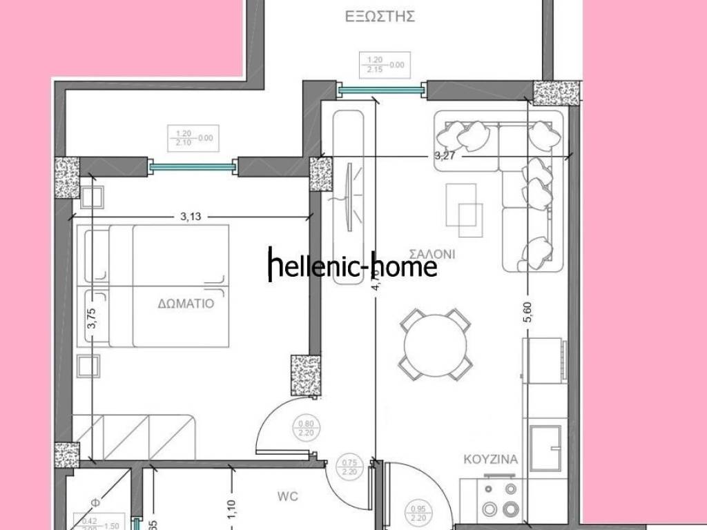 Αποτελείται από 1 υπνοδωμάτιο, σαλοκουζίνα, μπάνιο.