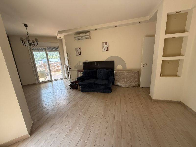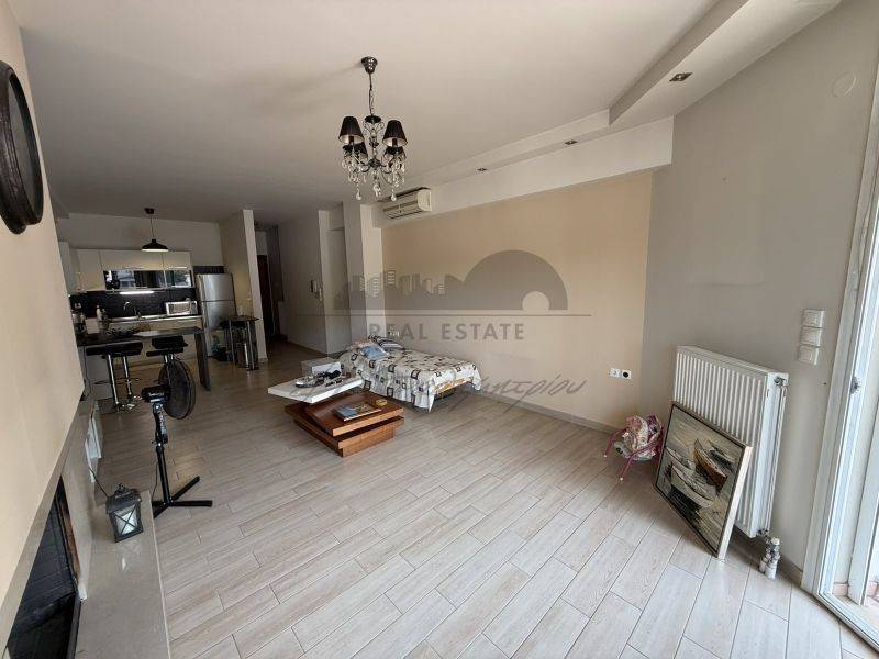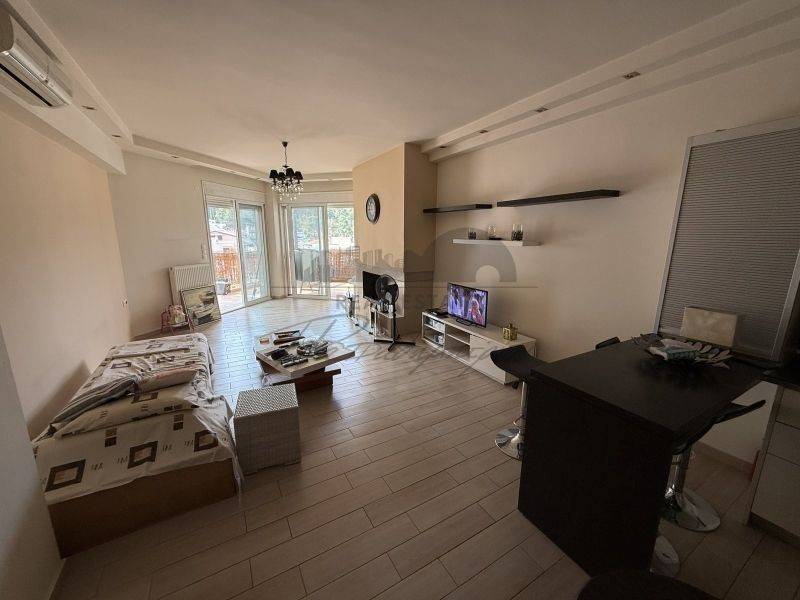 Διαμέρισμα τριάρι 103 τ.μ. στον 3ο όροφο στη Νέα Δημητριάδα. Αποτελείται από δύο υπνοδωμάτια με δυνατότητα και τρίτου υπνοδωματίου , σαλόνι, κουζίνα, 2 μπάνια και μπαλκόνι. Διαθέτει αυτονομία αερίου και 3 κλιματιστικά και τζάκι. Διαθέτει επίσης θέση στάθμευσης πιλοτής και αποθήκη υπογείου 10 τετραγωνικών. Υπάρχει προεγκατάσταση για ηλιακό θερμοσίφωνο και συναγερμό, διαθέτει τριφασικό ρεύμα, ηλεκτρικά ρολά, μπόιλερ. Έχει θέα το λόφο της Γορίτσας.