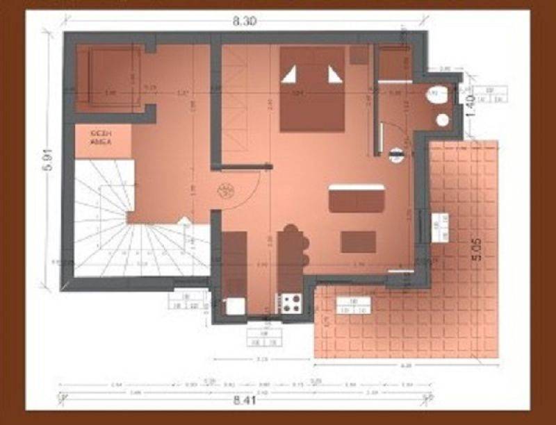Βρίσκεται στον 1ο όροφο και αποτελείται από έναν ενιαίο χώρο με κουζίνα και μπάνιο.