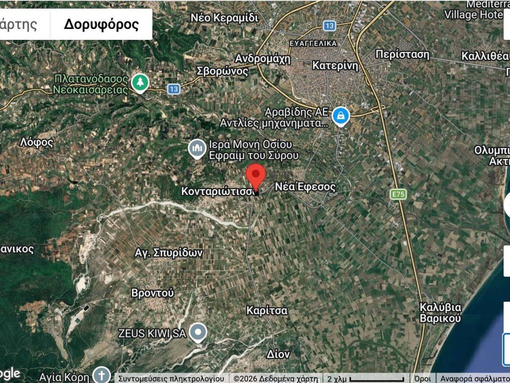 SP93: Πωλείται αγροτεμάχιο 10.880 τ.μ. στην Κονταριώτισσα Πιερίας, άρτιο και οικοδομήσιμο, με νότιο προσανατολισμό. Βρίσκεται σε ιδιαίτερα προνομιακή θέση, με πρόσοψη 68 μ. στην επαρχιακή οδό Κατερίνης - Καρίτσας και επιπλέον 68 μ. στην επαρχιακή οδό Κατερίνης - Κονταριώτισσας, προσφέροντας εξαιρετική προβολή και εύκολη πρόσβαση. Το ακίνητο διαθέτει δημοτική παροχή ύδρευσης και είναι κατάλληλο τόσο για αγροτική όσο και για επενδυτική ή επαγγελματική εκμετάλλευση, χάρη στη θέση και τα χαρακτηριστικά του. Απέχει μόλις 1,5 χλμ. από τον οικισμό της Κονταριώτισσας και 6 χλμ. από την Κατερίνη. Τηλέφωνο άμεσης υπόδειξης: 6974607524 - Γεώργιος Λ. Παντικίδης * LeoRealEstate * Διεύθυνση: Κ. Παλαιολόγου 1, Κατερίνη, ΤΚ. 60133 * Τηλέφωνο: 23510-26300 * Website: www.leorealestate.gr * Email: info@leorealestate.gr * Facebook: www.facebook.com/leorealestate.gr * Instagram: www.instagram.com/leorealestate.gr * Αναζητήστε στη σελίδα μας *leorealestate.gr* ακίνητα που εξυπηρετούν τις δικές σας ανάγκες. Δείτε ακίνητα με εικονική περιήγηση 360°, βίντεο και φωτογραφίες, με τοπογραφικό σχέδιο και κατόψεις, με ακριβείς πληροφορίες τοποθεσίας και σημείων ενδιαφέροντος (POI). Κάνετε like στη σελίδα μας στο facebook: facebook.com/leorealestate.gr, ώστε να παρακολουθείτε τα τελευταία νέα μας και νέα από την αγορά των ακινήτων. Στην υπόδειξη του ακινήτου είναι απαραίτητη η υπόδειξη της αστυνομικής ταυτότητας ή του ΑΦΜ.