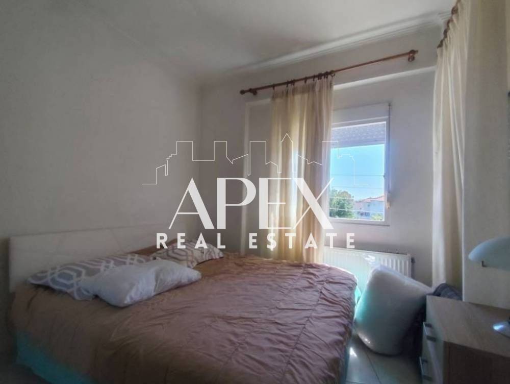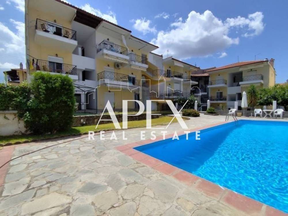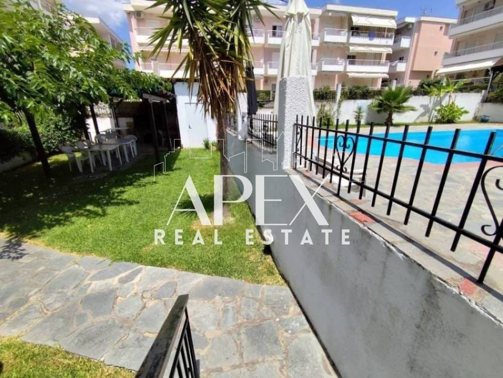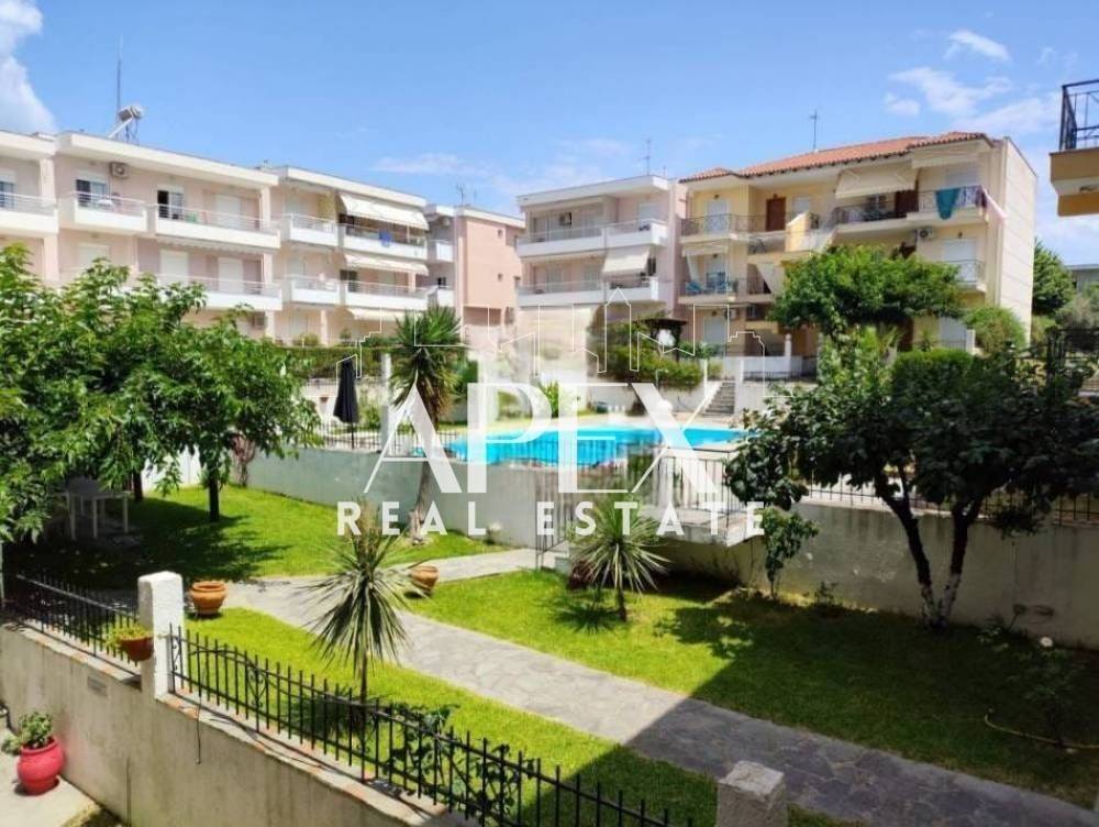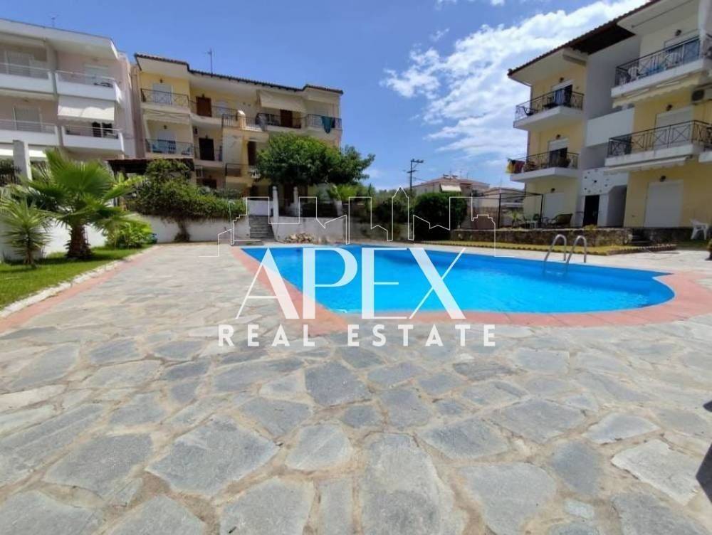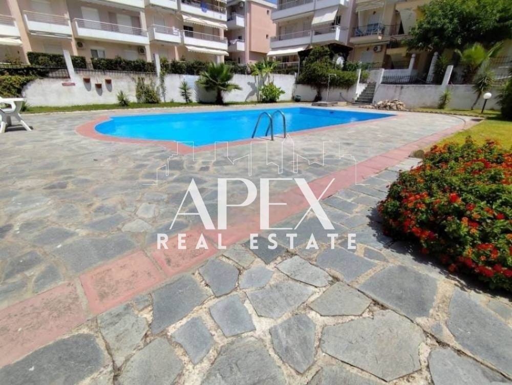 Πωλείται διαμέρισμα, 64τ.μ, στον 2ο όροφο, 400μ. από την παραλία. Αποτελείται από δύο ευρύχωρα υπνοδωμάτια, μια φωτεινή κουζίνα, μεγλαο σαλόνι και ένα μπάνιο. Διαθέτει μέγάλη βεράντα, τζάκι, σώματα με λέβητα πετρελαίου, κοινόχρηστη πισίνα και κήπο. Βρίσκεται σε ιδανικό σημείο, κοντά σε beach bars, εστιατόρια, σουπερμάρκετ και μαγαζιά.