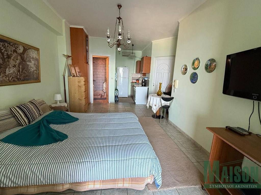 Πωλείται διαμέρισμα 38 τ.μ. κατασκευής 2004, με 2 δωμάτια σε υπερυψωμένο ισόγειο. Ενεργειακή κλάση Β, με διπλά τζάμια, ενιαία κουζίνα με σαλόνι, επιπλωμένο και επιτρέπονται τα κατοικίδια. Διαθέτει επιφάνεια βεράντας, ήσυχο περιβάλλον, κήπο, κουφώματα αλουμινίου, μπάνιο και χωρίς κοινόχρηστα. Διαμπερές, προσόψεως με απεριόριστη θέα θάλασσα. Θέρμανση με κλιματιστικό. Κωδικός ακινήτου: 18617. Maison Estate - www.maison-estate.gr.