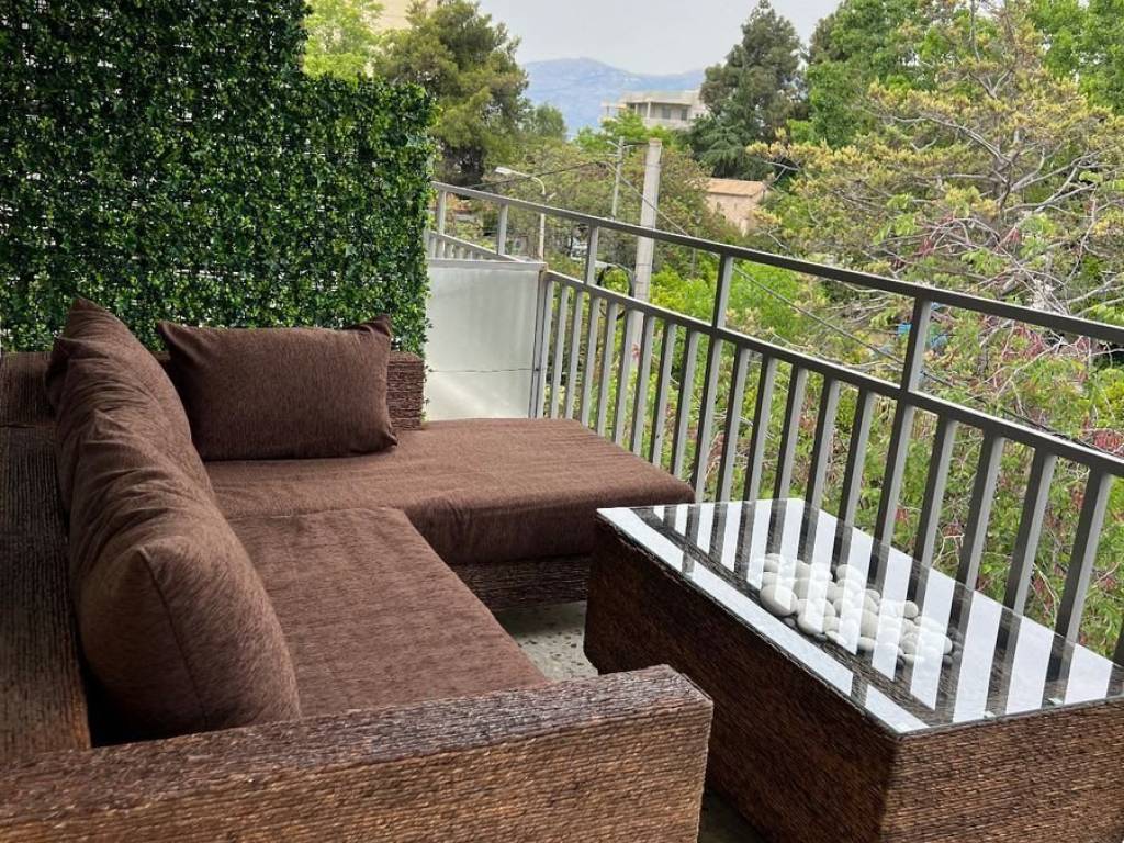 ΚΗΦΙΣΙΑ- κέντρο-Ενοικίαση απο 1 έως 6 μήνες. Πλήρως επιπλωμένο διαμέρισμα 112 τμ, 2ος, ρετιρέ χωρίς ασανσέρ με εύκολα σκαλοπάτια , βορειοανατολικό, με θέα πλατεία και Πάρνηθα, με 2 υ/δ, μεγάλες ντουλάπες, χώρος γραφείου, ανακαινισμένο μπάνιο και wc, μεγάλο σαλόνι με τζάκι, ξεχωριστή πλήρως ανακαινισμένη επανδρωμένη κουζίνα, μεγάλη βεράντα μποστά με έπιπλα βεράντας και στα υ/δ στ πίσω μέρος , κατασκευής '72, πλήρως ανακαινισμένο 2015 απο αρχιτέκτωνα. Διαθέτει κεντρική θέρμανση με πετρτέλαιο, τζάκι, 2 κλιματιστικά και προσεχώς και τρίτο, πόρτα ασφαλείας, κουφώματα αλουμινίου, διπλά τζάμια, δάπεδα μάρμαρο και όμορφο παρκέ, θηροτηλέφωνο. Μηνιαία κοινόχρηστα 80-100 Ευρώ. Τιμή 1 εβδομάδα 700 Ευρώ ( χωρις κοινόχρηστα και ρεύμα), 20 ημέρες έως 1 μήνα 1750 Ευρώ, 2-3 μήνες 1650 Ευρώ, 4-6 μήνες 1550 Ευρώ KIFISSIA- centre-Rental from 1 to 6 months. Fully furnished penthouse apartment 112 sq m , 2nd floor without elevator but with easy stairs, faces northeast, with view of a lovely square and Parnitha mountain , with 2 bedrooms, large closets, office space, renovated bathroom and wc, large living room with fireplace, separate fully renovated and equipped kitchen, large veranda with furniture and smaller one in the bedrooms , built in '72, fully renovated in 2015 by an architect. It has central heating with petrol , fireplace, 2 air conditioners and soon a third, security door, aluminum frames, double glazing, marble floors and beautiful parquet, intercom. Monthly common charges 80-100 Euros. Price 1 week 700 Euros ( with no common charges and electricity charges ) , 20 days to 1 month 1750 Euros, 2-3 months 1650 Euros, 4-6 months 1550 Euros